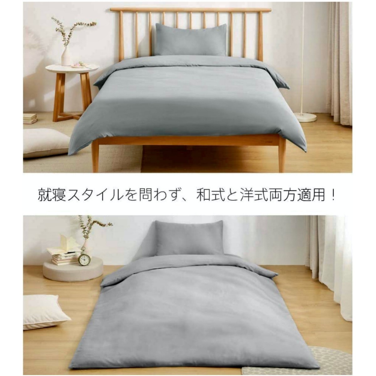 足側にファスナーを使用し、出し入れ簡単、一人でも着脱しやすいです。掛け布団カバーの四隅に紐があり、掛け布団を所定の位置に固定します。