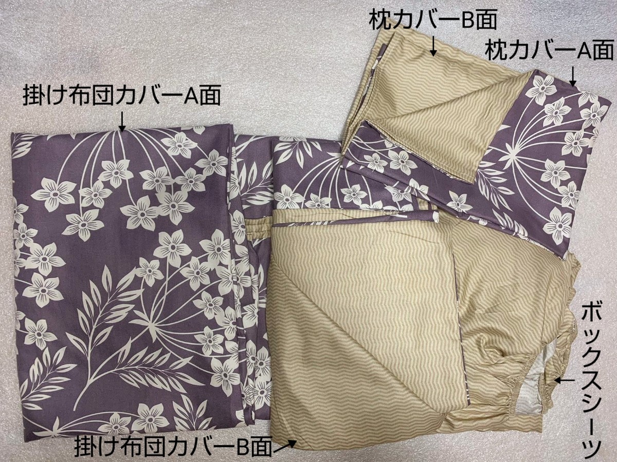 ・掛け布団カバー(A面:花、B面:シェブロンボーダー):