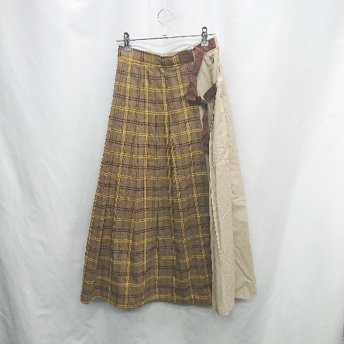 ◇ ⊇ Ray BEAMS レイ ビームス fbfdjv チェック ロング プリーツ スカート サイズ0 ベージュ レディース E