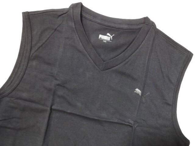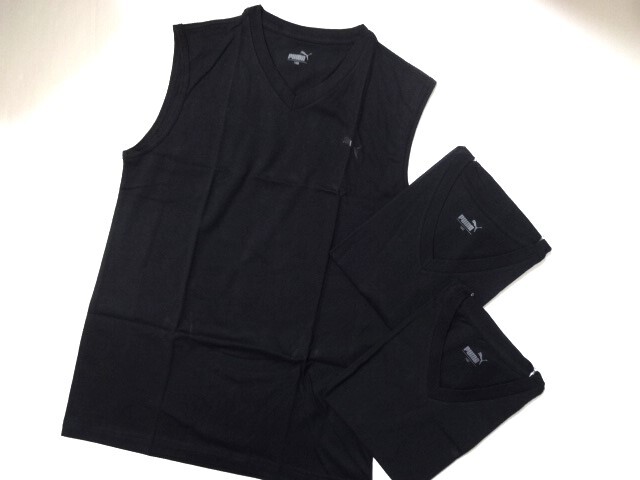 新品未使用 PUMA 胸にプーマ Vネック スリーブレス 160 黒 3枚組