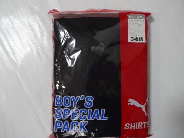 新品未使用 PUMA 胸にプーマ Vネック スリーブレス  黒 160  3枚組 プーマ 肌着 タックトップ BOYS 合宿 ノースリーブ ブラック