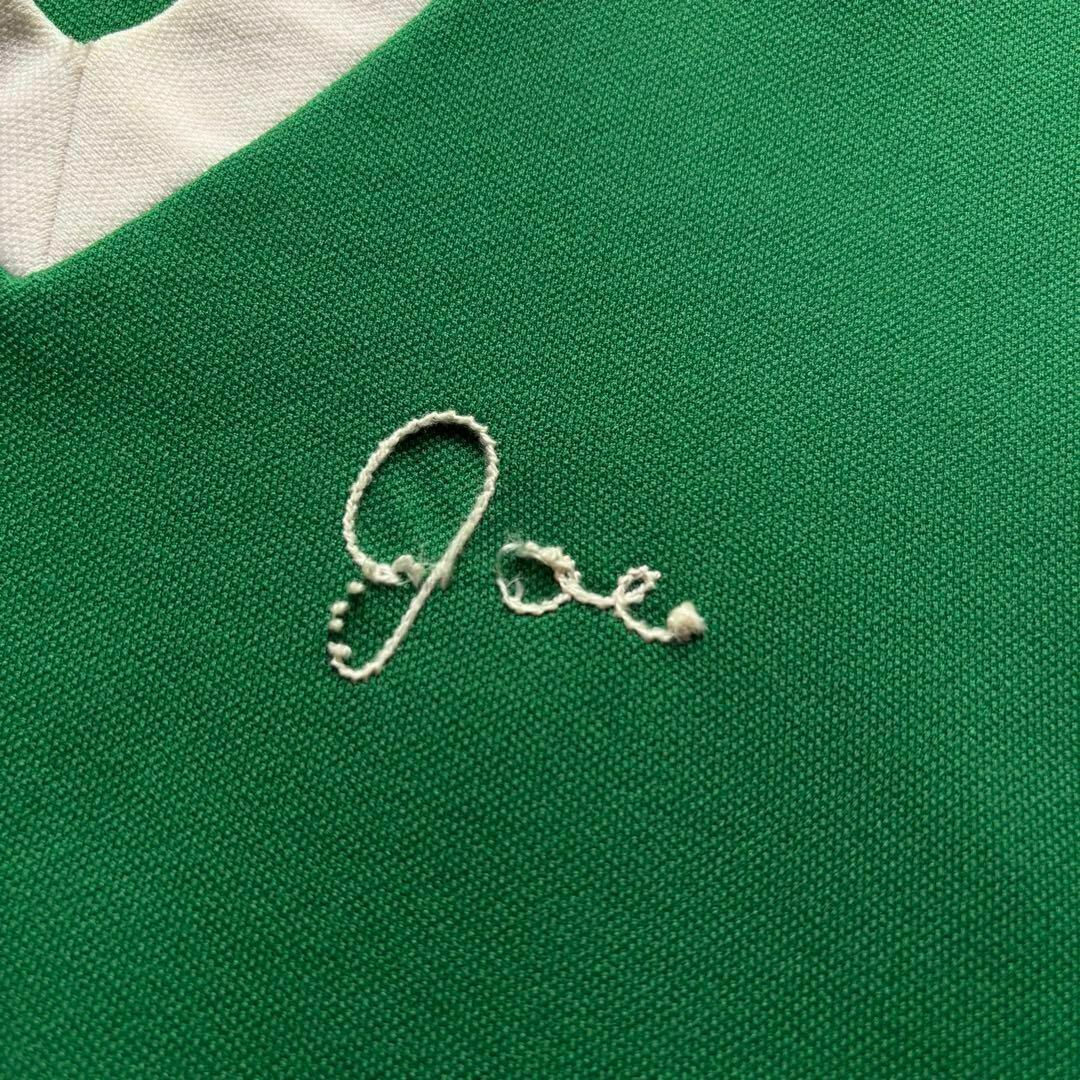 鮮やかなグリーンにアイボリーのリブや刺繍がレトロ可愛い1着。