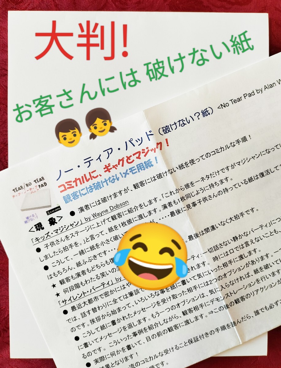 【★バカウケ!愉快な お喋りマジック!マジシャンには 破けるけど お客さんには 破けない紙 ノーティアパット マジック 手品 廃盤!★】