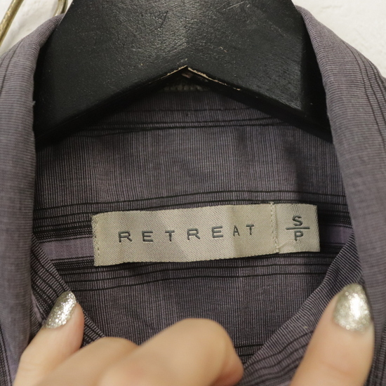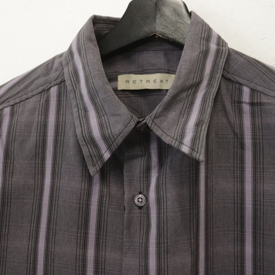 商品名 Q270 2000年代製 RETREAT 半袖シャツ■00s 表記Sサイズ ストライプ パープル 紫 古着 アメカジ ストリート 激安 古着卸 90s 80s 70s 柄