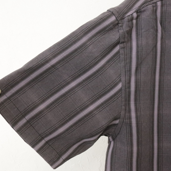 Q270 2000年代製 RETREAT 半袖シャツ■00s 表記Sサイズ ストライプ パープル 紫 古着 アメカジ ストリート 激安 古着卸 90s 80s 70s 柄