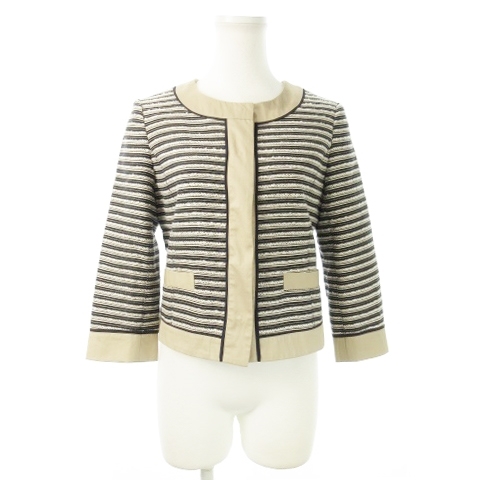 ビームスハート BEAMS HEART ジャケット ツイード ノーカラー 七分袖 ボーダー 小さいサイズ 0 紺 ネイビー /AO1 レディース