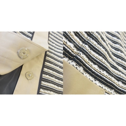 【仕様】素材 やや厚手 開閉 スナップボタン 比翼 伸縮性 ややあり 透け感 なし ポケット 前×2 裏地 あり 柄 ツイード 切替 ボーダー
