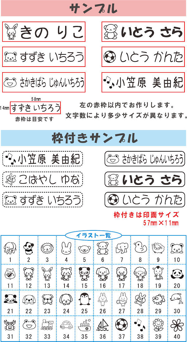 文字数によって文字とイラストの大きさが見本と異なる場合があります。