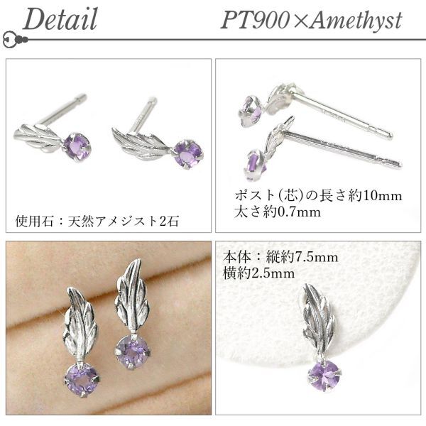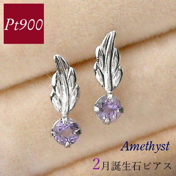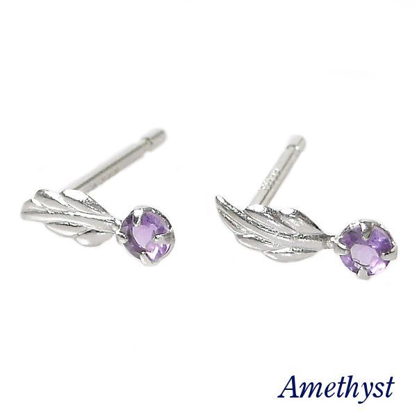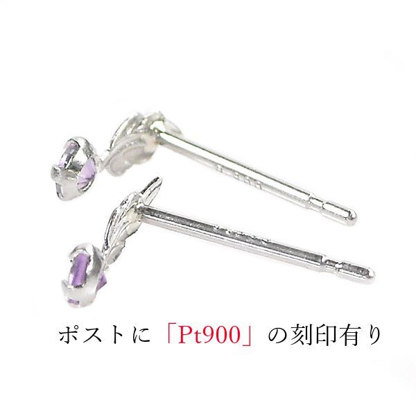 アメジスト ピアス 天然石 2月誕生石 プラチナ レディース 50代 40代 60代 30代 20代 天使の羽 一粒 両耳 pt900 羽根 女性用