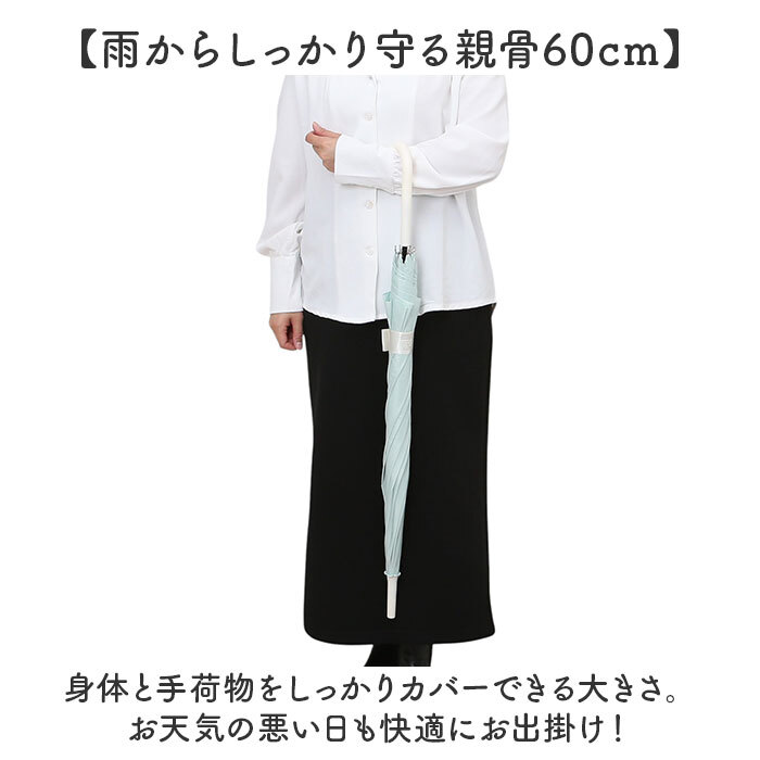 商品説明 | ・・【いつでも持ち歩きやすい相棒】 ・シーンを問わないシンプルデザイン!「ATTAIN 60cmジャンプ 長傘」。 ・【雨からしっかり守る親骨60cm】 ・身体と手荷物をしっかりカバーできる大きさ。お天気の悪い日も快適にお出掛け! ・【紫外線防止効果で晴れた日も】 ・紫外線から守ることもできる、晴雨兼用傘。夏のお出かけの相棒にも。 ・(※)雨傘として使うことを主にしたアイテムです。色の濃淡により紫外線遮蔽率が異なります。数値の目安は淡色:約80%、濃色:約90%。 ・【ワンタッチでラクラクオープン】 ・片手でサッと開きやすいジャンプ式。荷物を持っている時も、スマートに対応。 ・【しなやかで丈夫なグラスファイバー】 ・親骨は、弾力性があり折れにくいグラスファイバー。強度が高く、使い勝手抜群。 ・【サッとまとまる面ファスナーバンド】 ・傘生地をまとめるバンドは、面ファスナー式。幅広でたたむ時も手間取らず、ひとまとめ。 ・【お気に入りを選べるカラー】 ・コーデに馴染む、ナチュラルなカラーリング。面ファスナーバンドのロゴデザインもおしゃれ♪ |