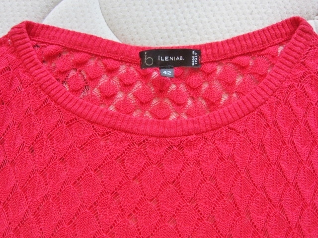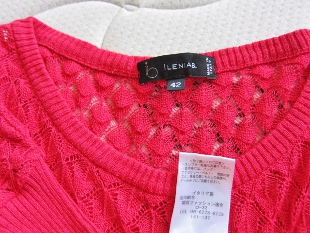 綺麗め ILENIA B. ブランド トップス レース仕立て 美品 MADE IN ITALY イレニア ビー42 レースニット PINK 麻混 刺繍 レア Brand 特 得