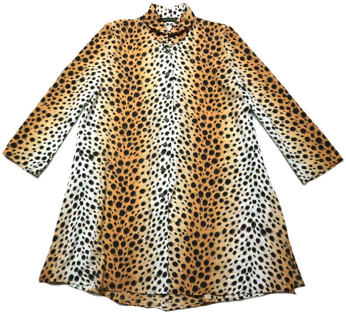 ・サラッとした軽やかで着心地の良い薄手のポリエステル地、お尻が十分隠れるハーフ丈の雰囲気の良い作りです。伊太利屋のロングブラウス/コートです。