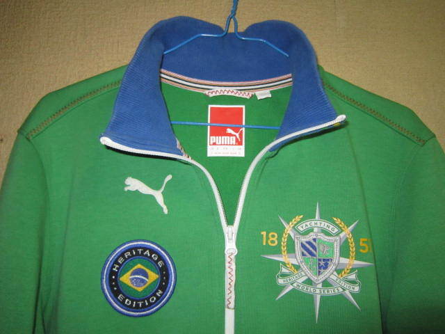 超レア! PUMA BRASIL プーマ ブラジル 刺繍ワッペン フルデコ ヘリテージ トラックトップ ジャージ ジャケット 緑/青 US S