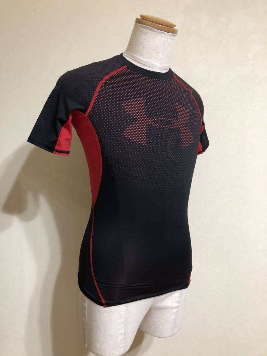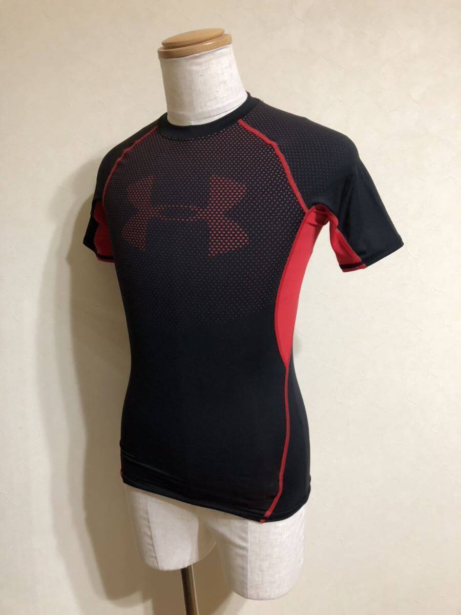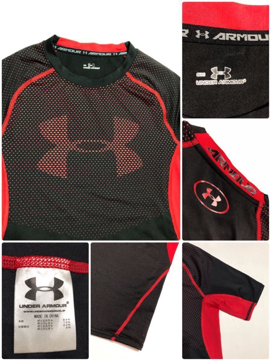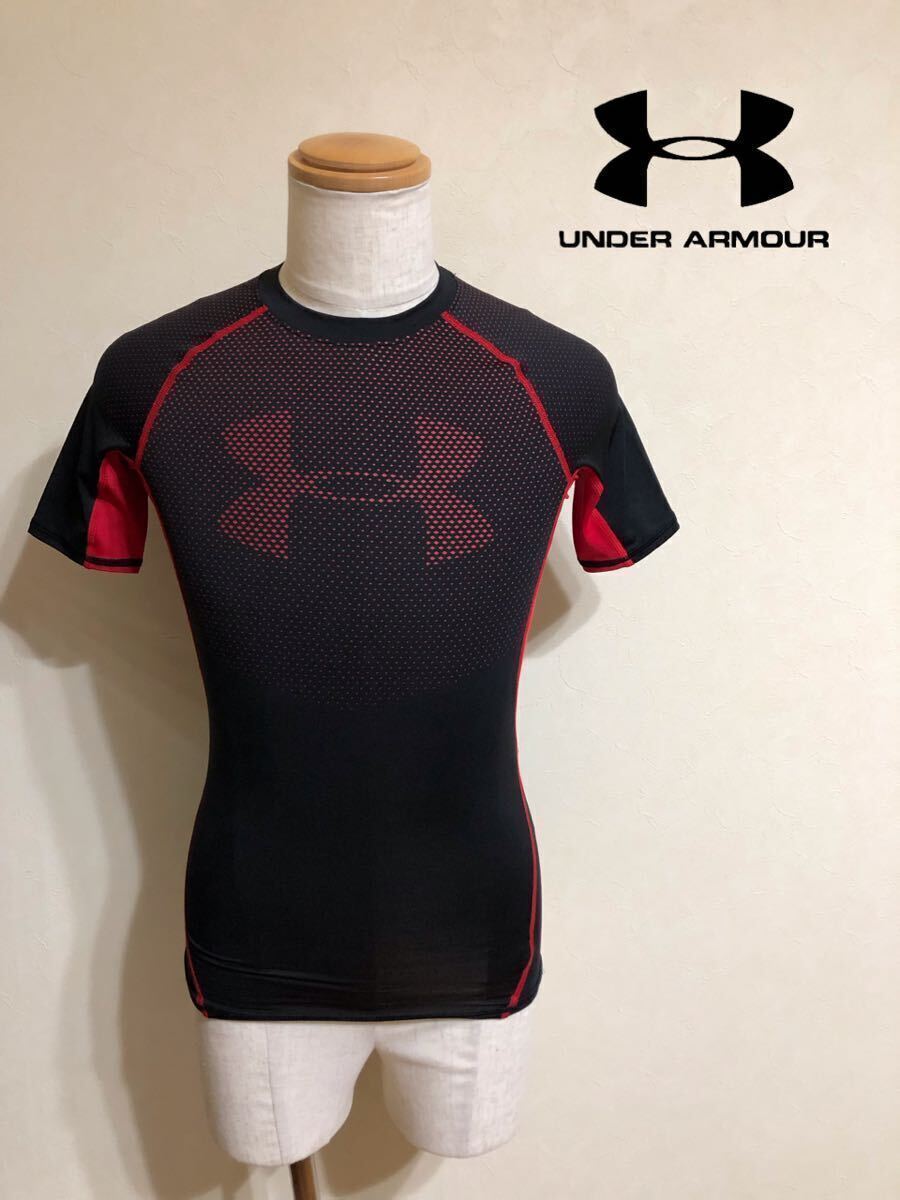 【美品】 UNDER ARMOUR アンダーアーマー メンズ フィット コンプレッション インナー ウェアー ビッグロゴ サイズSM 半袖 黒 赤 MCM3358