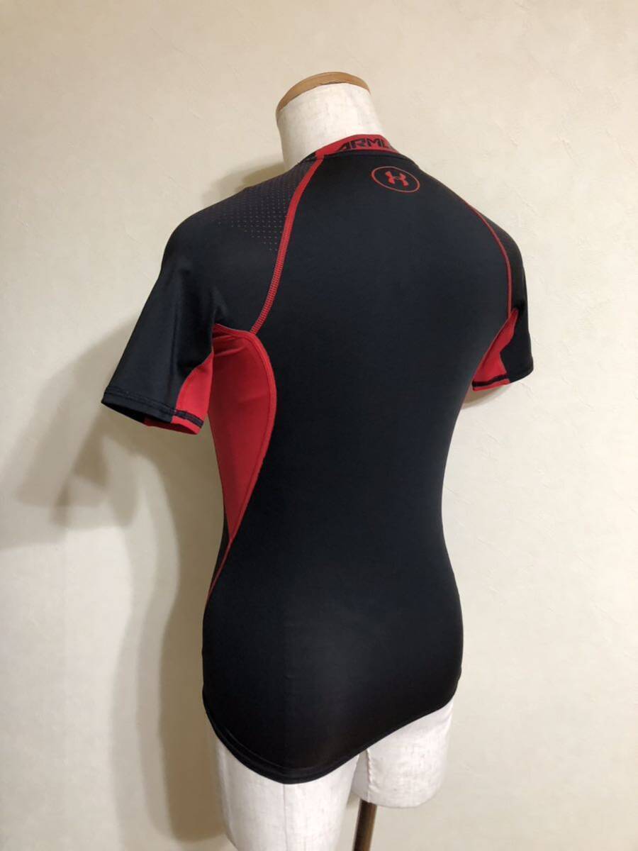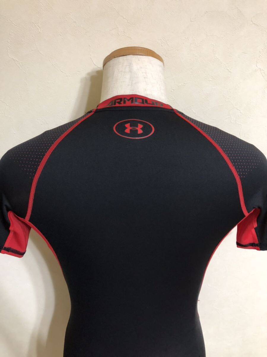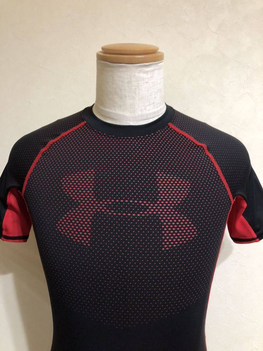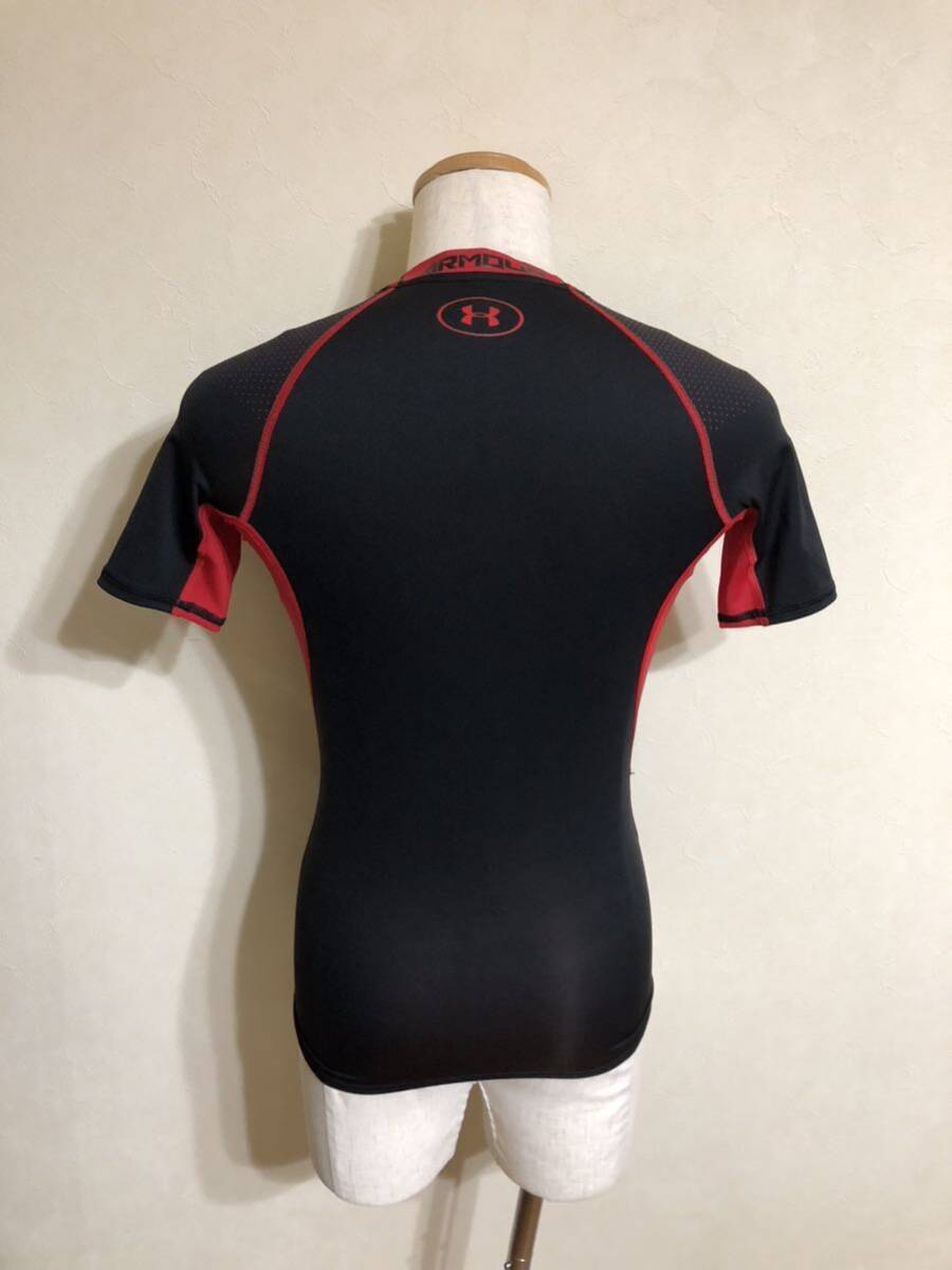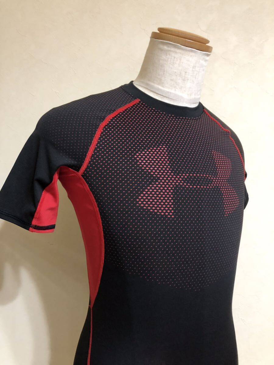 【美品】 UNDER ARMOUR アンダーアーマー メンズ フィット コンプレッション インナー ウェアー ビッグロゴ サイズSM 半袖 黒 赤 MCM3358