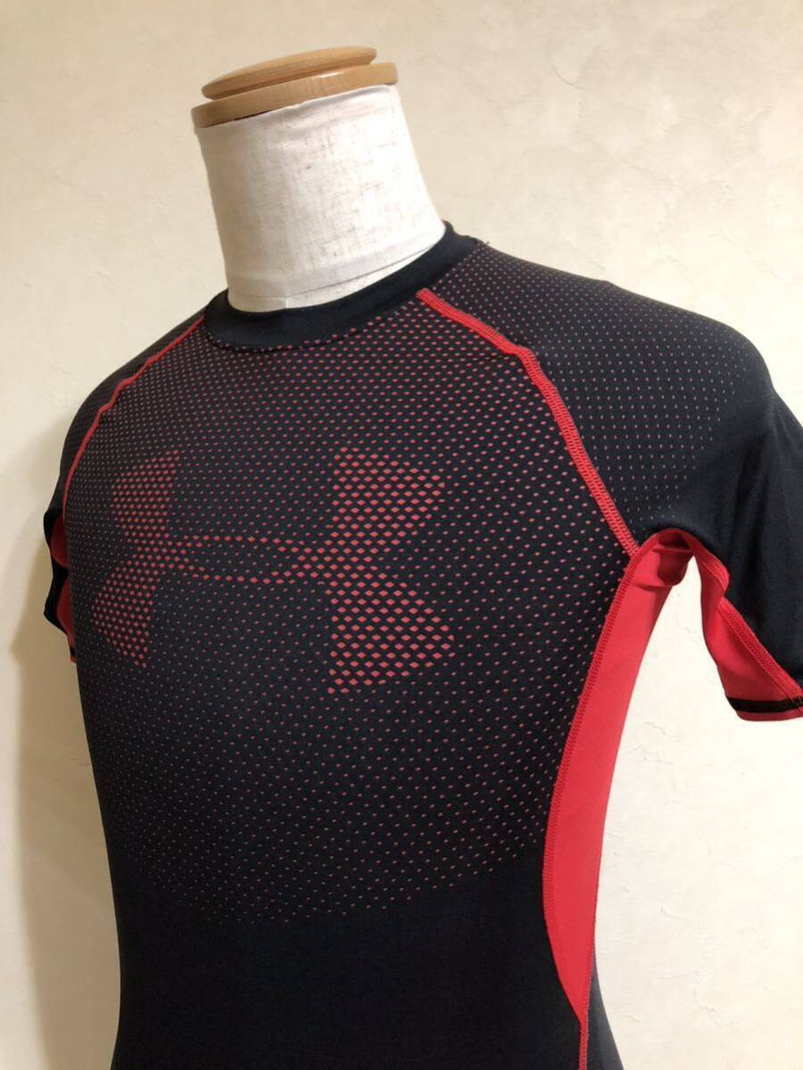 *サイズSM 半袖 黒 赤 型番:MCM3358 本体:ポリエステル84% ポリウレタン16%
