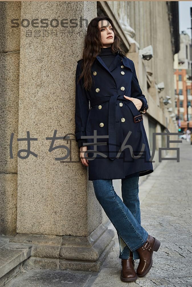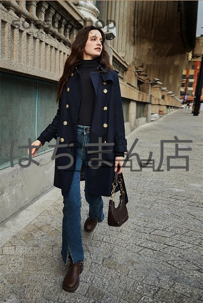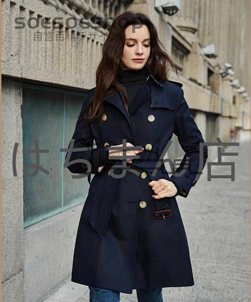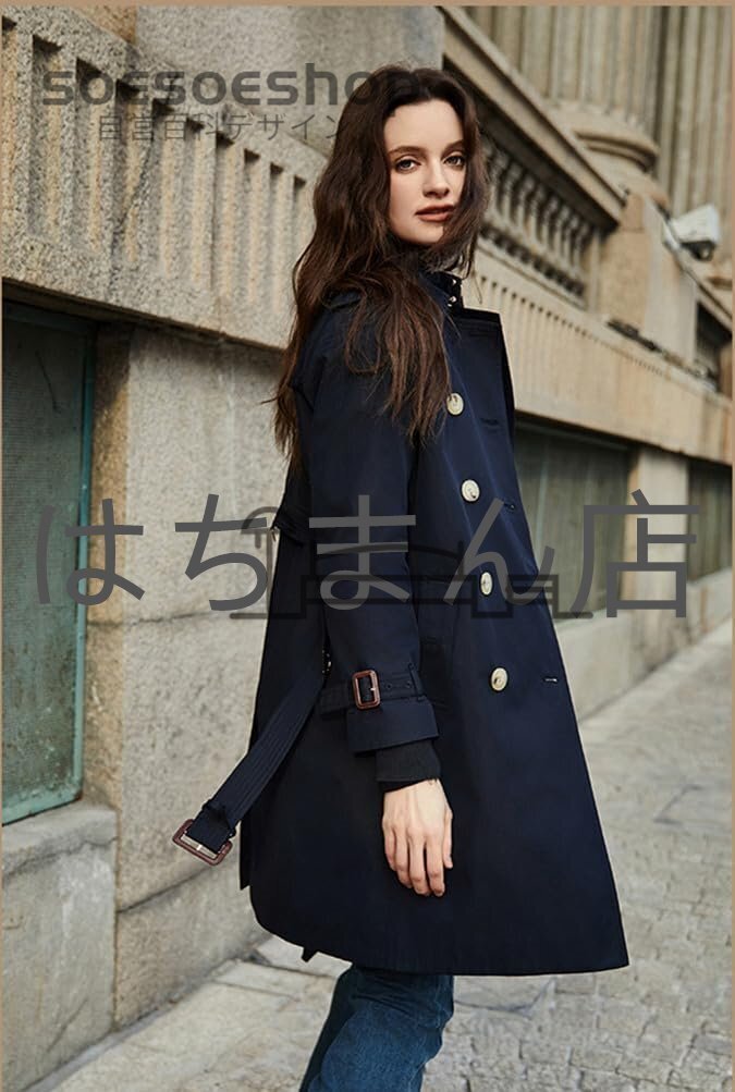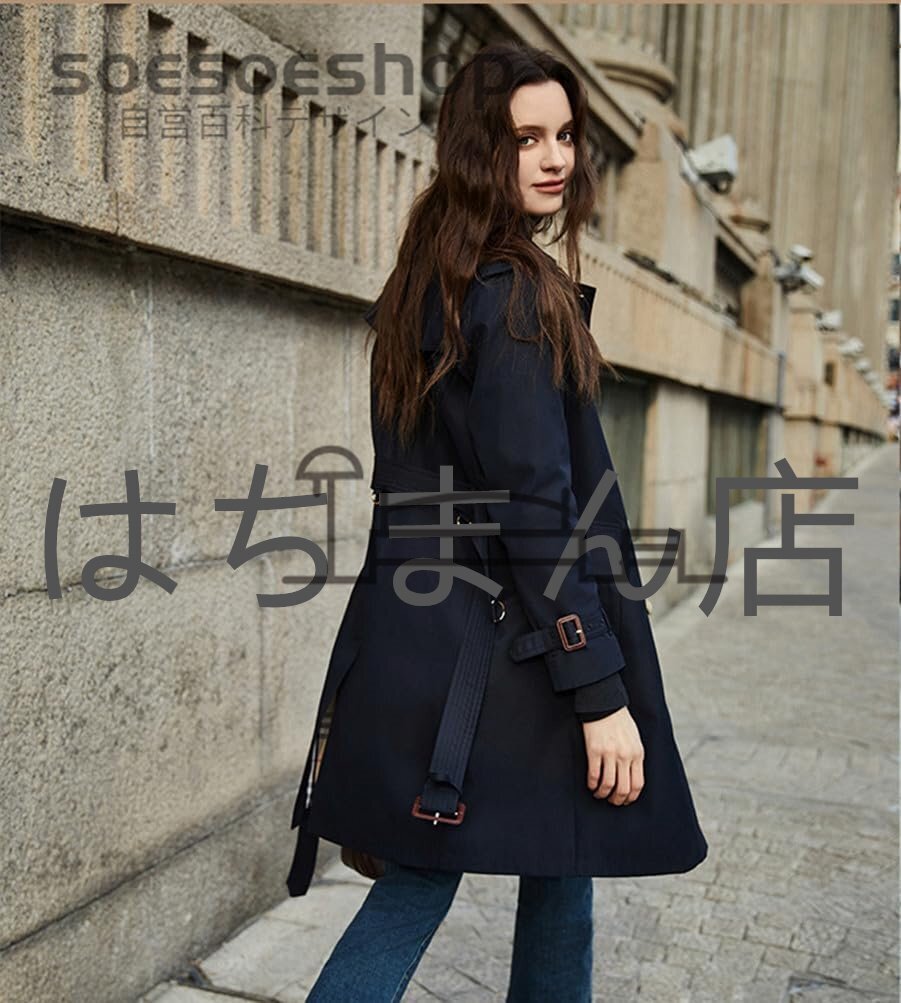 トレンチコート レディース スプリングコート ミディアム丈 膝丈 ライトアウター 大人 20代 30代 40代 通勤 卒業式 春秋 冬 ネイビー S-2XL