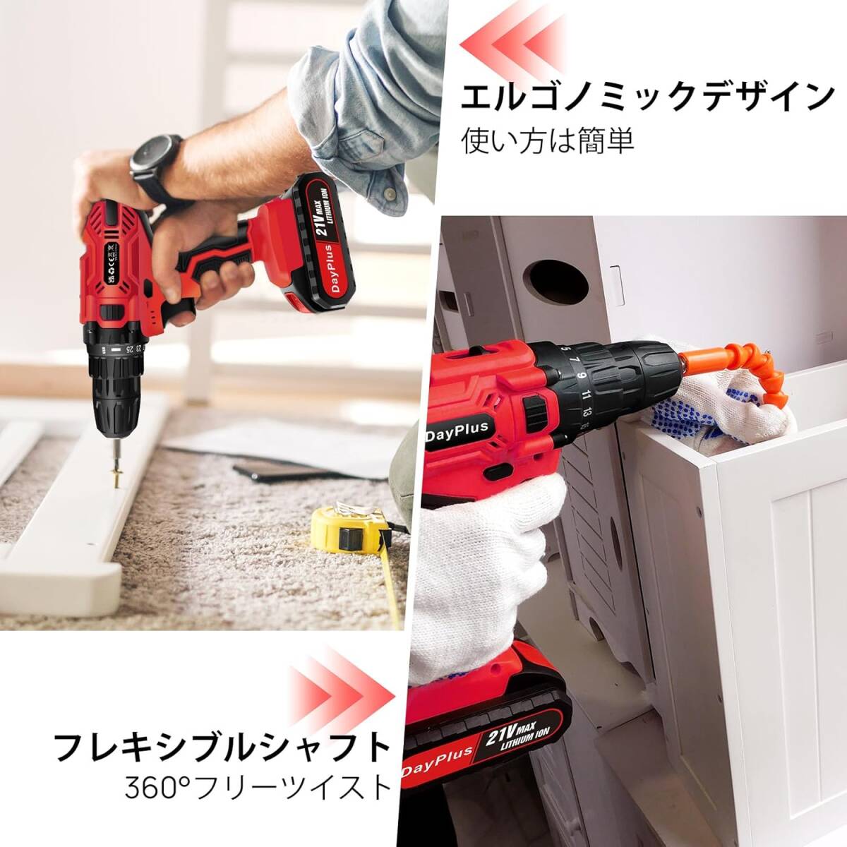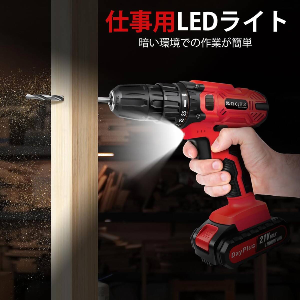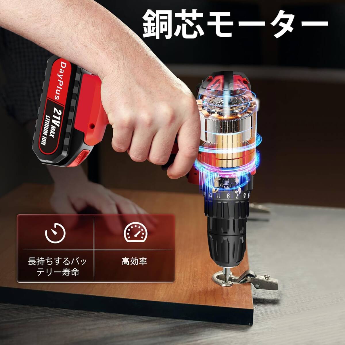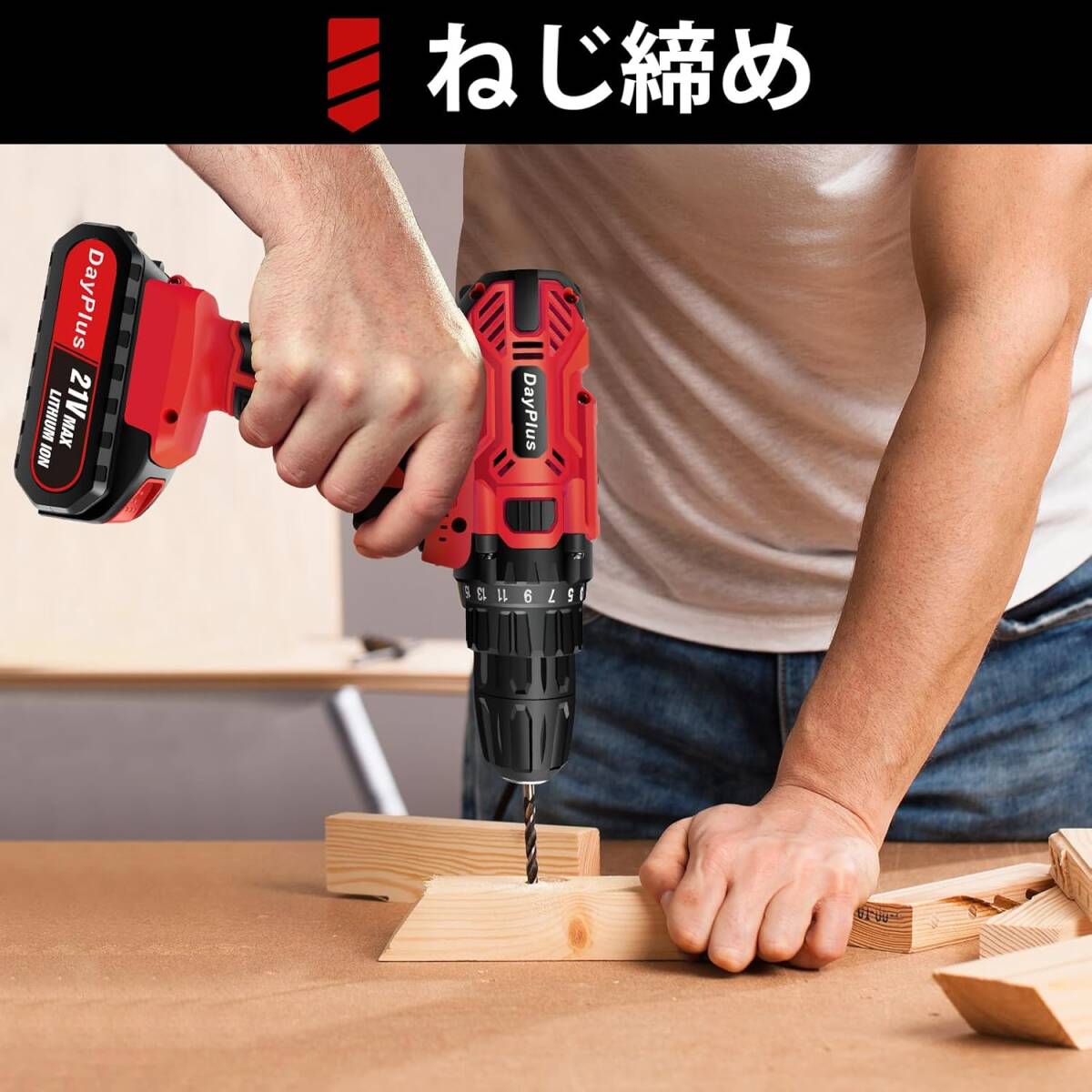 電動ドライバー 電動ドリル 21V 2段変速0-400RPM/0-1400RPM 1500mAh 25+1段階 最大45N.m