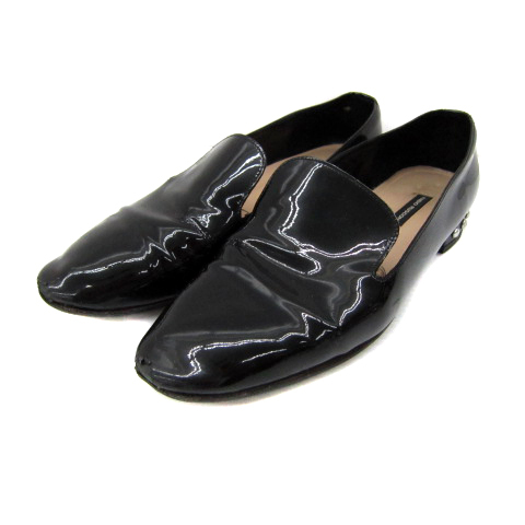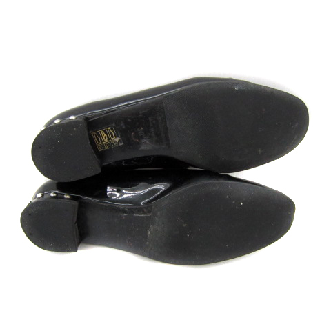 ファビオルスコーニ FABIO RUSCONI オペラシューズ ローヒール スタッズ エナメル 38 24.5cm 黒 ブラック /SY1 レディース