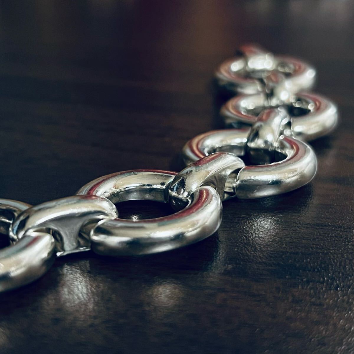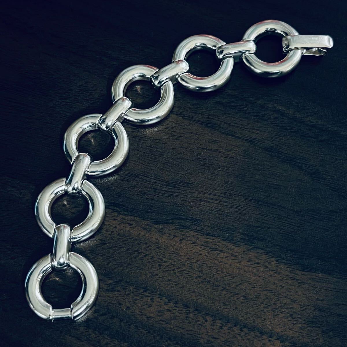 存在感のある太幅のサークル型リンクが印象的な1990年代に展開されたティファニーのブレスレット。