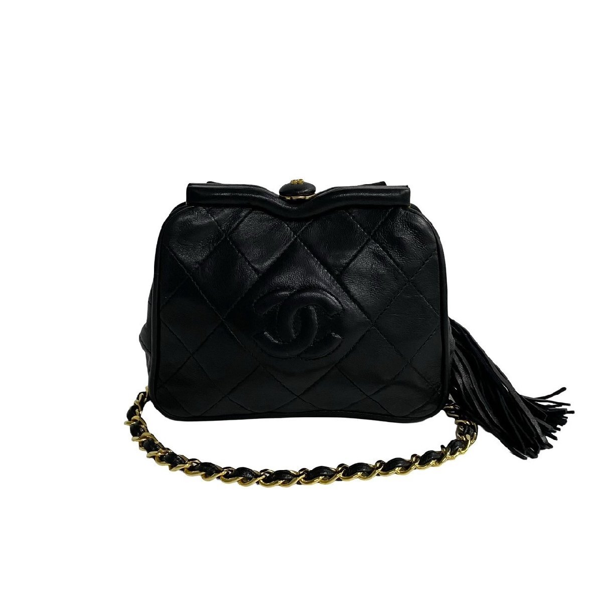 極 美品 シール有 1番台 CHANEL シャネル マトラッセ ココ ラムスキン レザー タッセル がま口 チェーン ショルダーバッグ ブラック 23-10