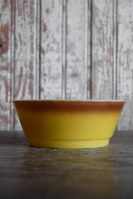 | 商品説明 岡山STAGEより出品します。アメリカで買い付けたアンティークのファイヤーキング シリアルボウルです。ファイヤーキングは、アメリカのアンカーホッキング社の耐熱ガラスブランドで1941年に誕生し、現在も存在するブランドですが、なかでも1941〜86年まで製造されていた耐熱ミルクガラスの製品が有名です。1960年代〜1970年代頃のボウルでイエローとブラウンのグラーデーションが可愛らしく経年によるミルクガラスの風合いとデザインが非常に良い雰囲気でヴィンテージ感漂う一品です。状態ですが、経年による小傷や擦れ、汚れ、多少の黄ばみ等の使用感はございますが雰囲気を損なうようなダメージはなくアンティークならではの良い状態かと思います。あくまでアンティーク観賞用ですのでご理解いただける方のご購入をよろしくお願い致します。 サイズ 高さ約5cm、開口部直径約12,5cmです。 予定発送方法 保障の利く佐川急便の元払い60cmサイズ料金で行います。 コメント 店頭でも販売しております。タッチの差で売り切れた場合はご了承下さい。よろしくお願いします。■落札後の連絡及びご質問の返答は基本的に午前10時~午後6時までとさせて頂きます。毎週水、木曜日、年末年始や時間外でのご連絡は休み明け及び翌日のご連絡となりますので予めご了承下さい。 STAGEホームページ https://stage-stage.ocnk.net// |