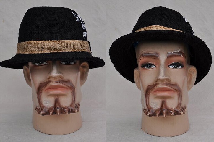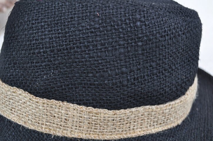 麻素材バーラップフェドラ ブラック ロゴ入り新品天然素材ヘンプ麻紐