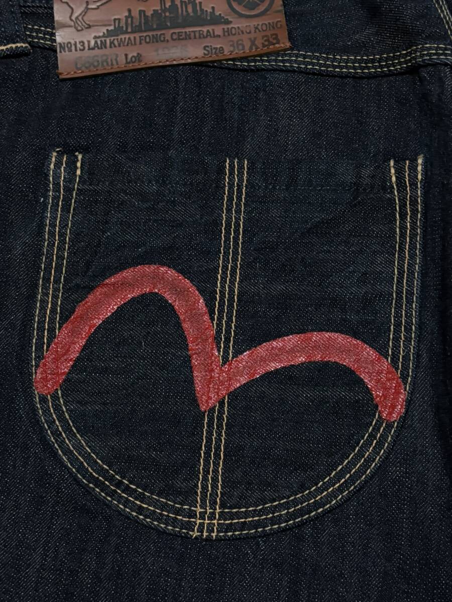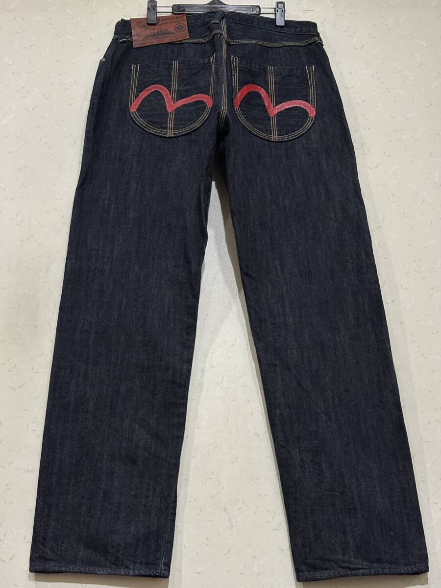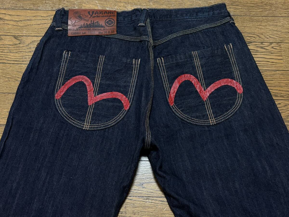 YAMANE ヤマネ LOT 1926 レッドカモメペイント セルビッチ デニムパンツ エヴィス EVISU 戎 インディゴ 濃紺 未裾直 大きいサイズ 36                BJBE.C