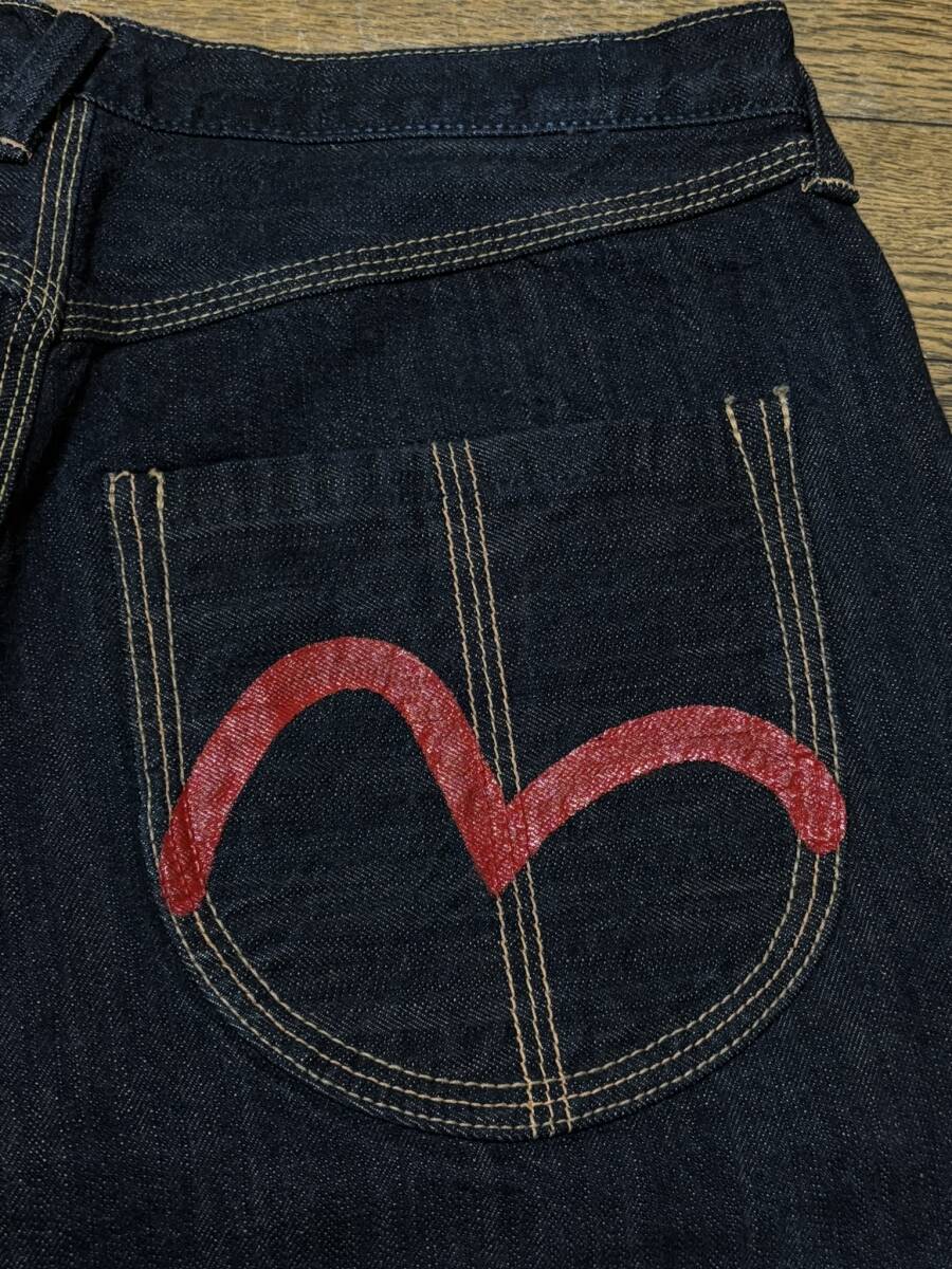 ※YAMANE ヤマネ LOT1926 レッドカモメペイントセルビッチデニムパンツ エヴィス EVISU 戎 インディゴ 濃紺 未裾直 大きいサイズ 36 BJBE.C