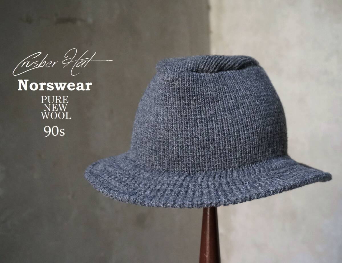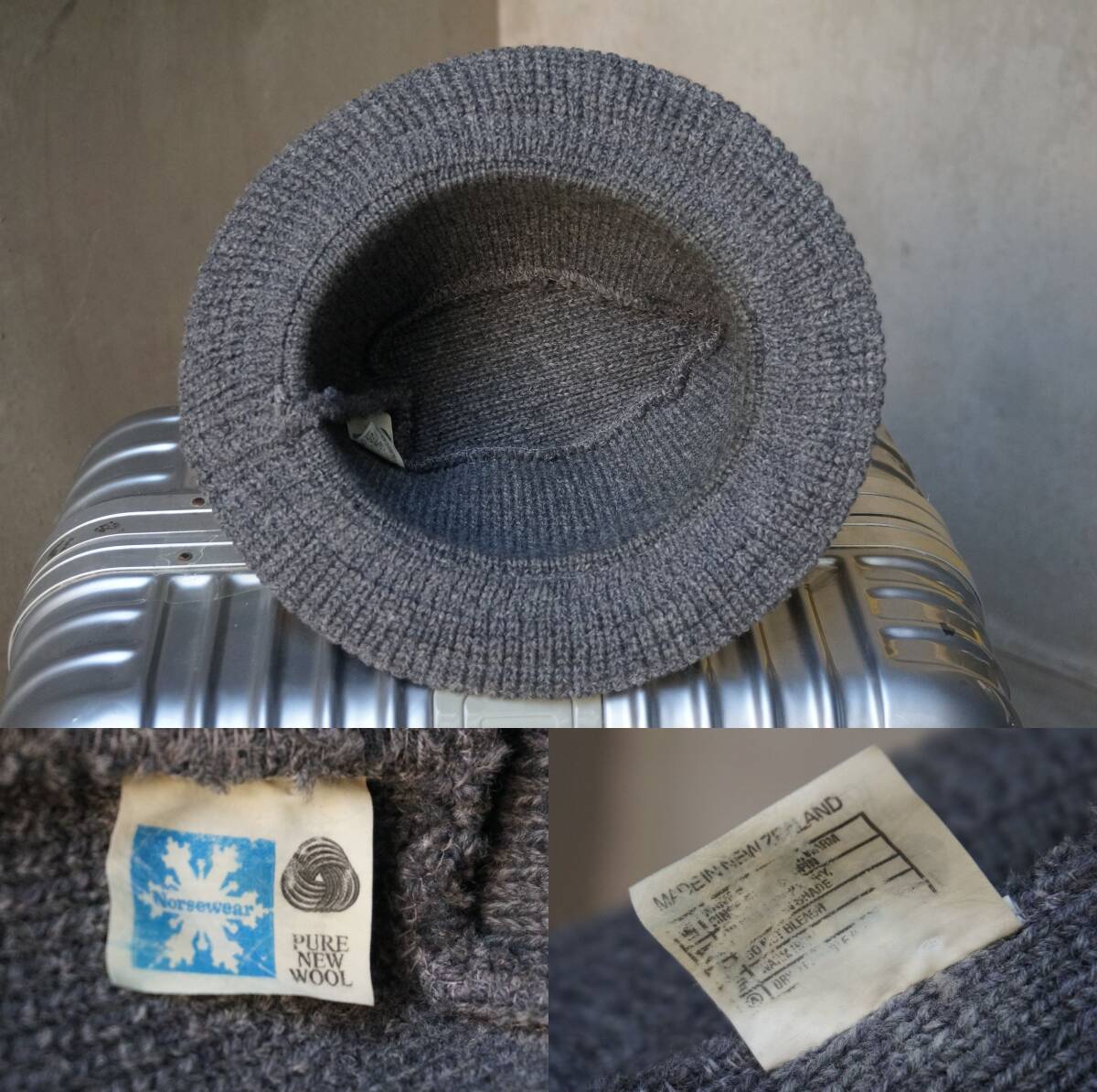 90s ニュージーランド製 Norswear グレー ピュアウール ニット クラッシャーハット 帽子 57.5