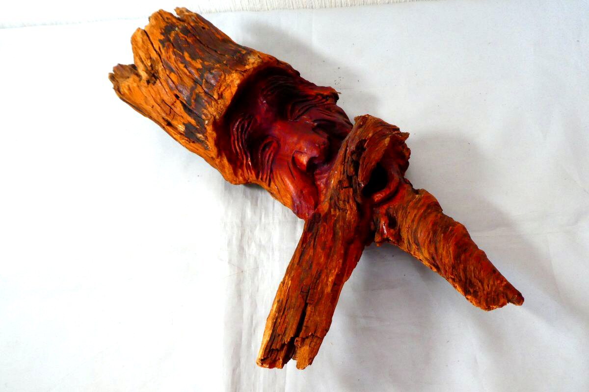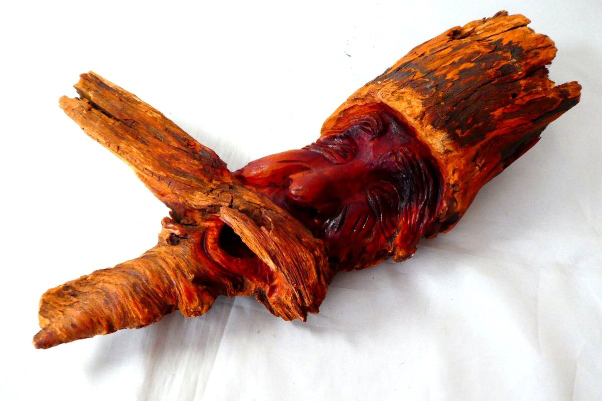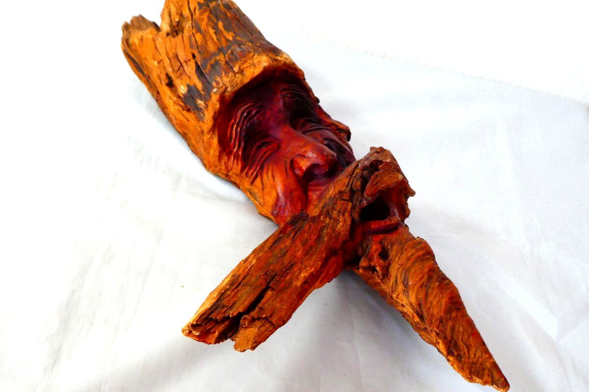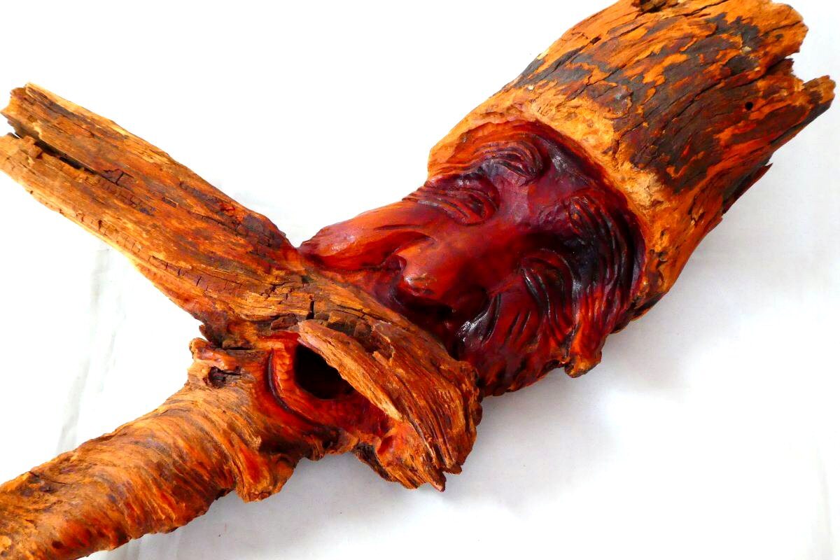 Й★木彫り★壁掛け★流木★一本木★爺★22×37㎝★オブジェ★インテリア★彫刻★天然木★USED★