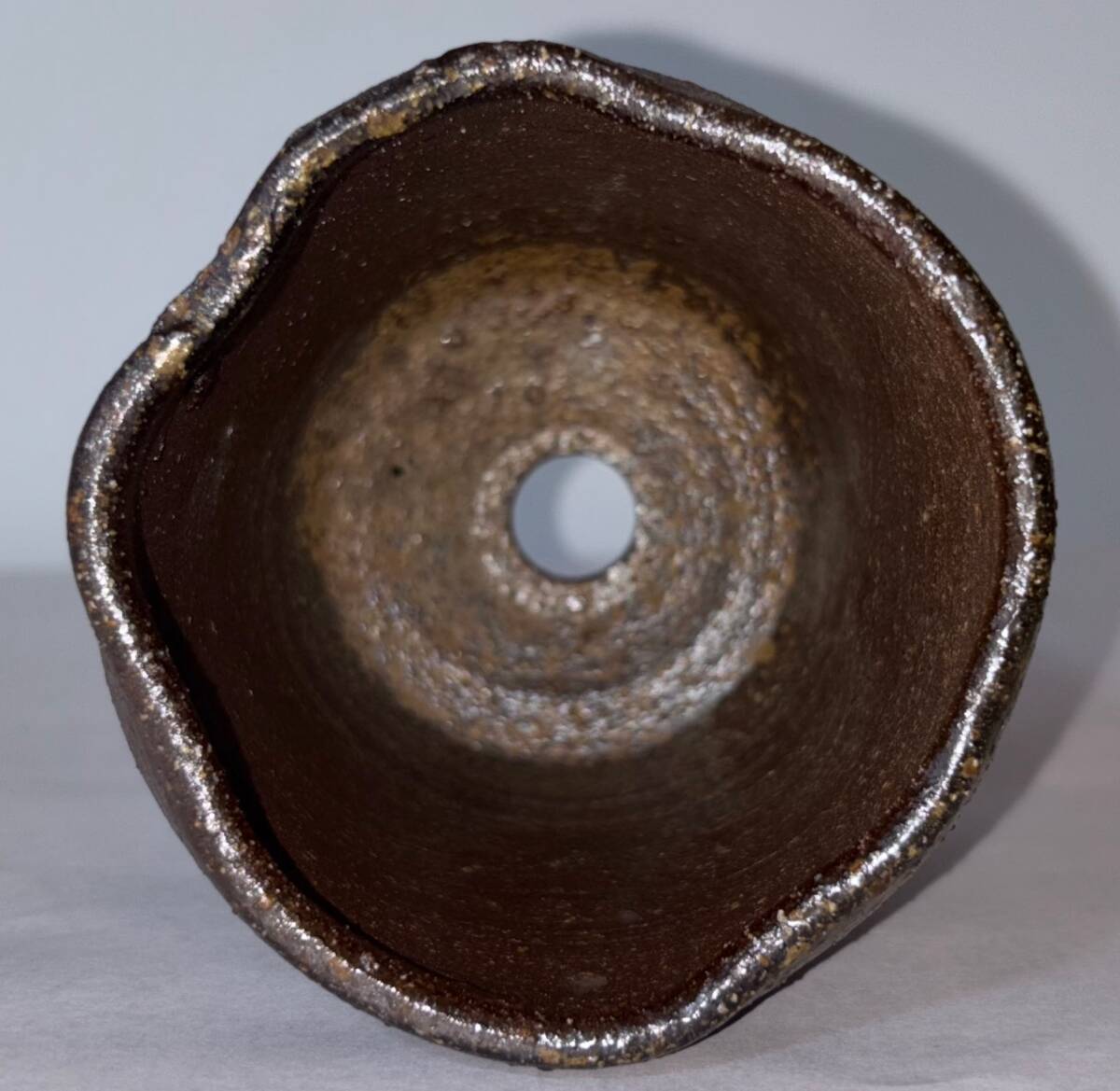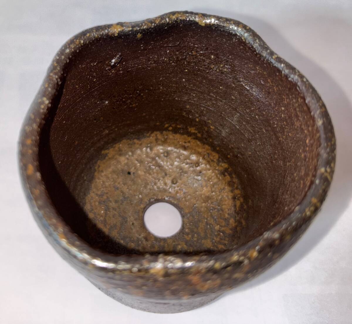平安虹泉 盆栽 鉢 変わり型 梨皮 窯変 切足