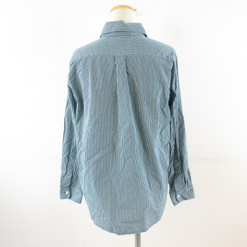 無印良品 良品計画 シャツ ブラウス 長袖 ストライプ 緑 M *T662 レディース