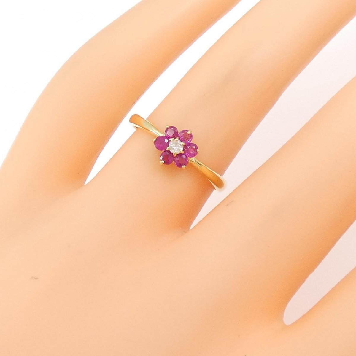 商品名 | K18YG フラワー ルビー リング |