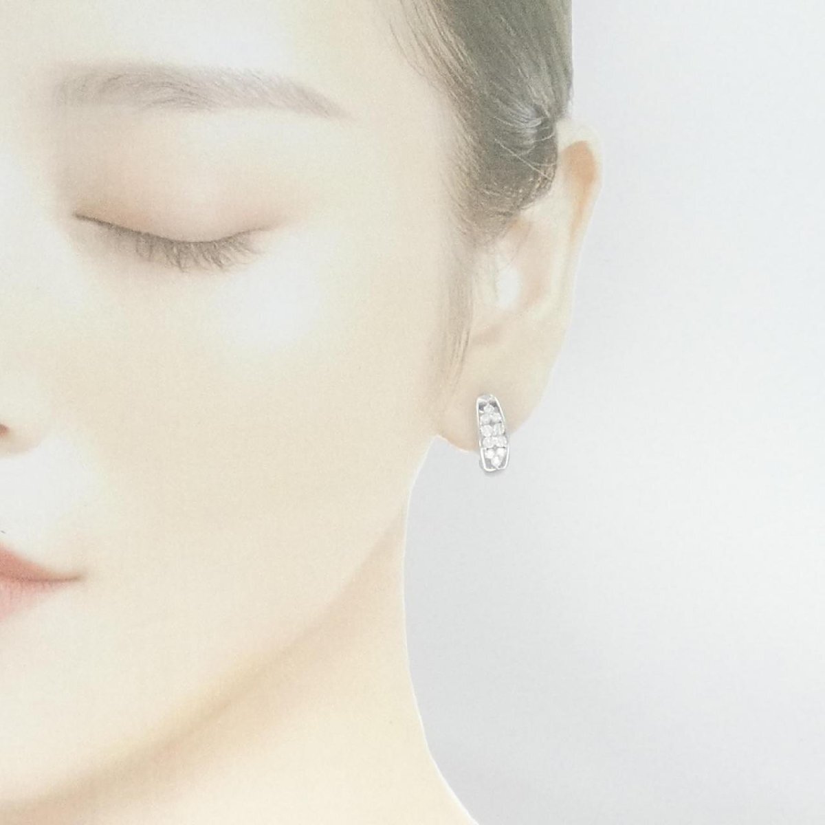 クリアに煌めくダイヤモンドをあしらったイヤリング。耳元を品良く飾ります。