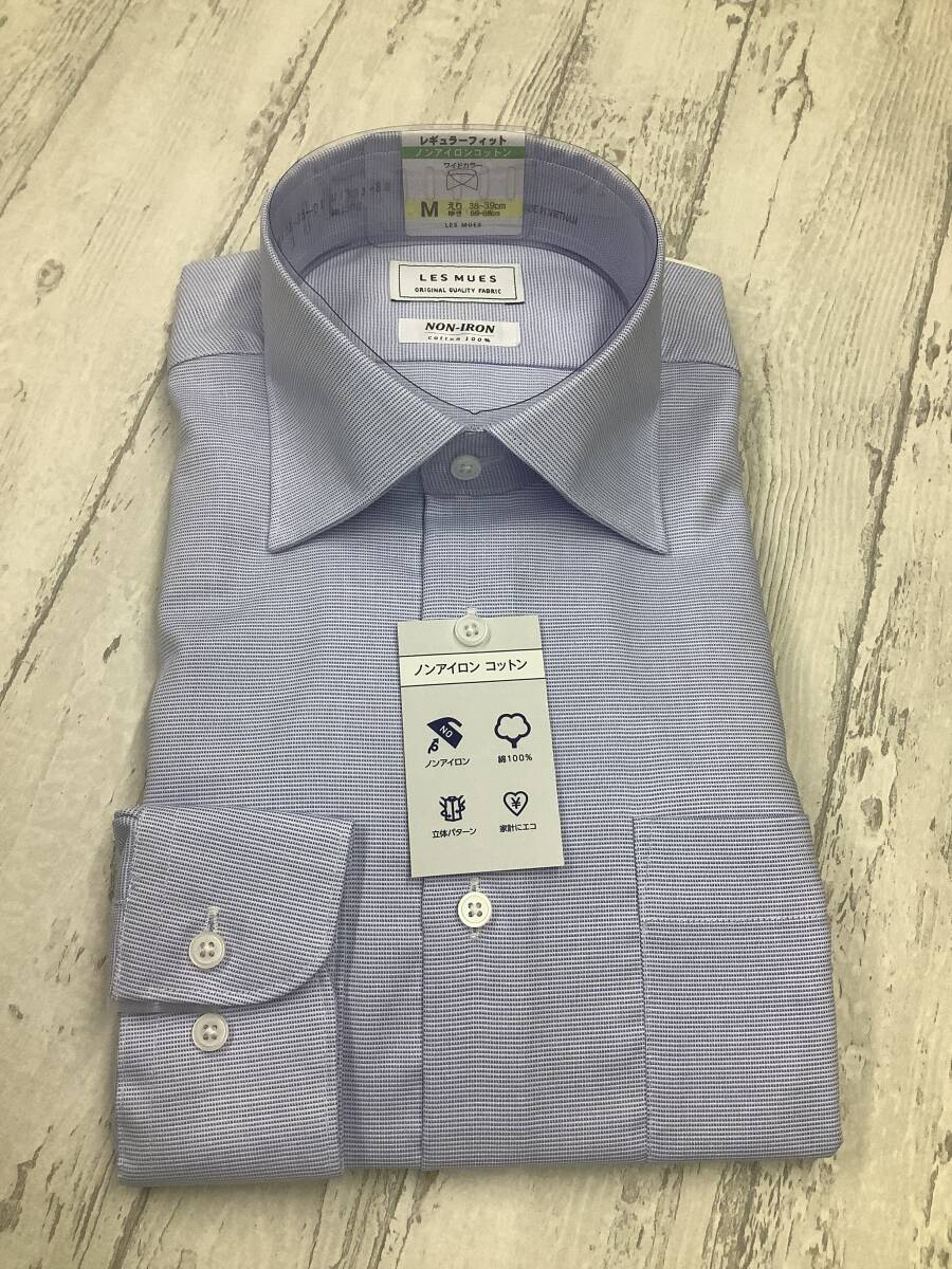 新品 39-88 長袖Mサイズ ワイドカラー★ドレスシャツ ノンアイロンコットン 綿100% 淡いブルー系ジャガード生地
