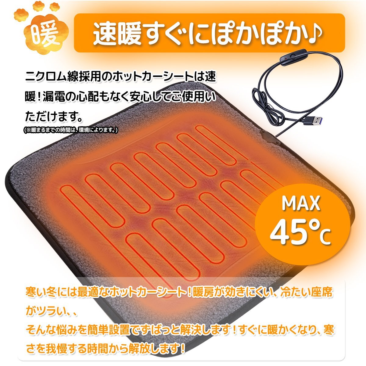 寒い季節でも心地よく過ごせるよう、ホットマット カーシート ヒータークッション USB 43×43cmで、すぐに暖かさを手に入れてください。