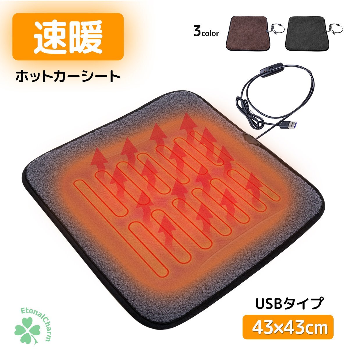 【高品質素材】ホットマット カーシート ヒータークッション USB 43×43cm 即暖 座席 滑り止め 座布団 3色選択 クリックポスト