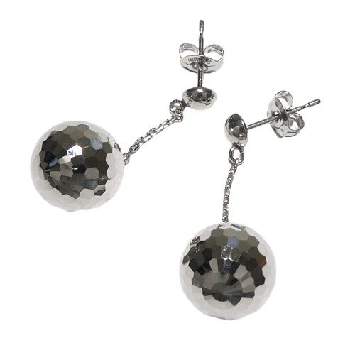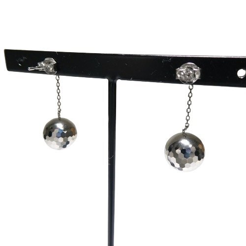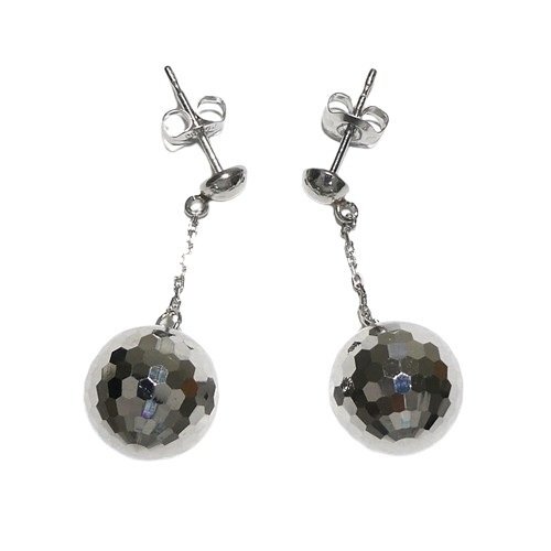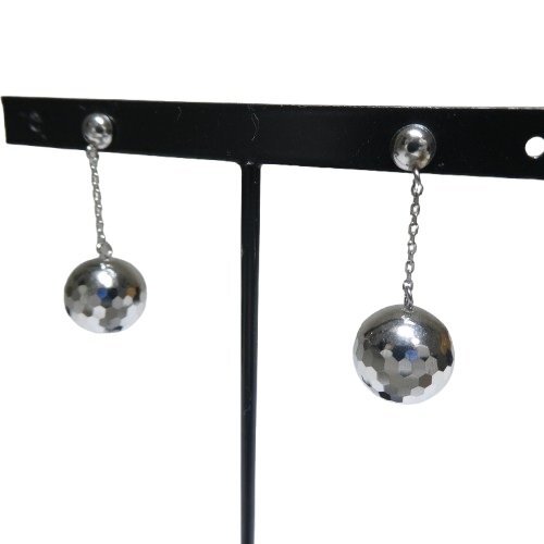 多面体カットが施されたボールが光を反射してキラキラと輝く華やかなピアスです。