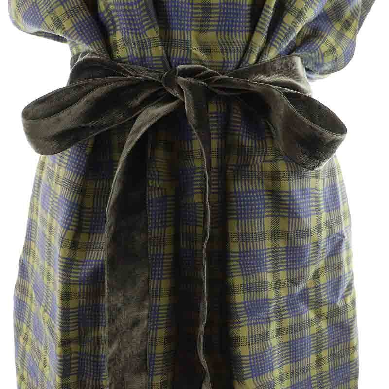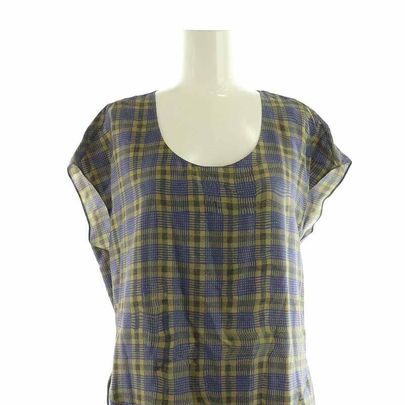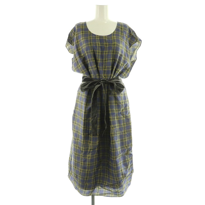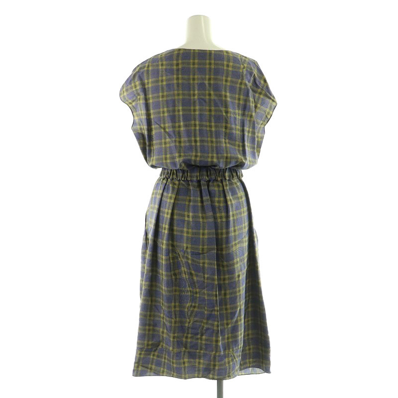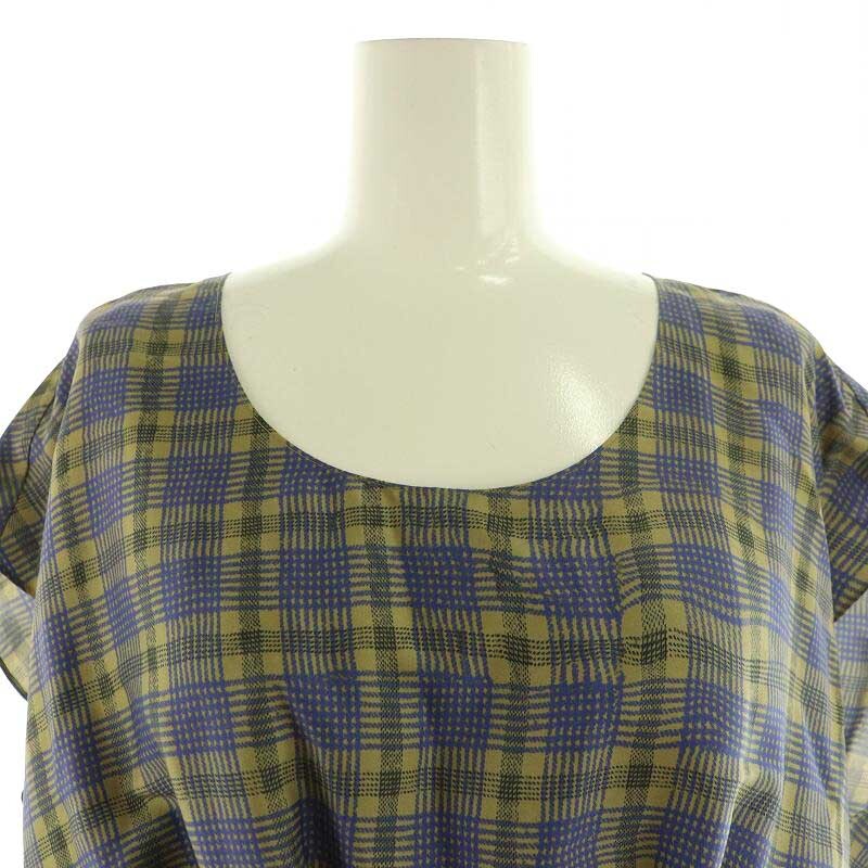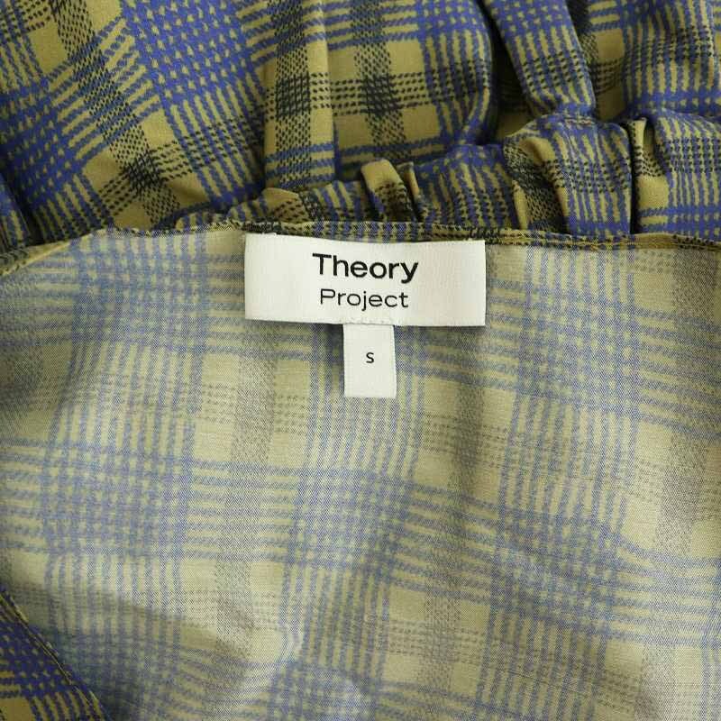 セオリー Theory Project 23SS Wrinkle Check Shift Dress ワンピース ロング フレンチスリーブ チェック S ネイビー カーキ