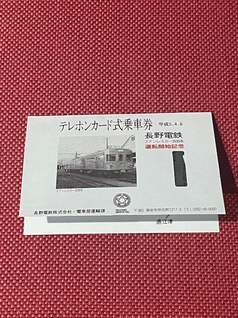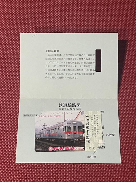 長野電鉄 ステンレスカー3500系運転開始記念 テレホンカード式乗車券 (管理番号102-58)