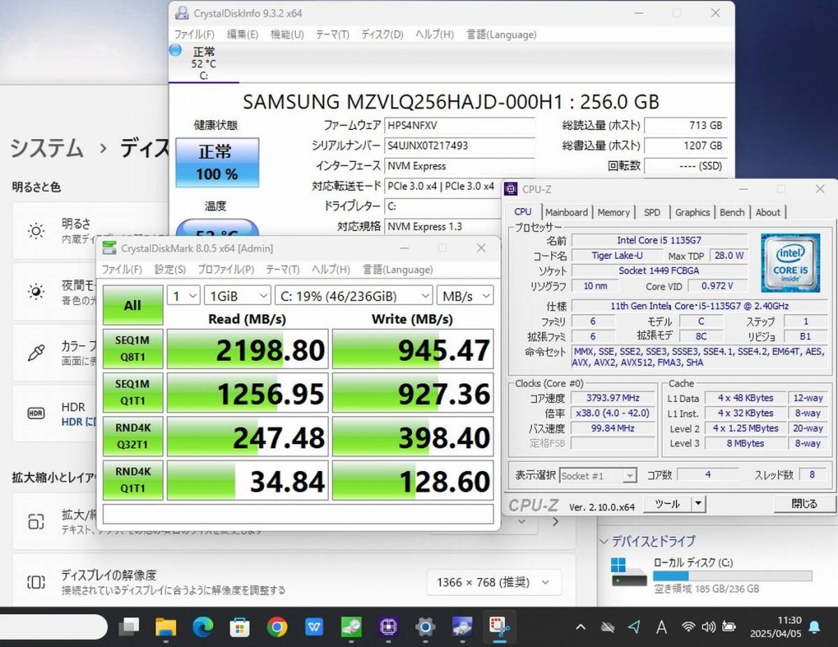 CPU: 超高速 Intel 卓越性能 第11世代Core i5-1135G7 2.4Ghz、 4コア8スレッド (ターボ・ブースト利用時の最大周波数 4.2GHz) |