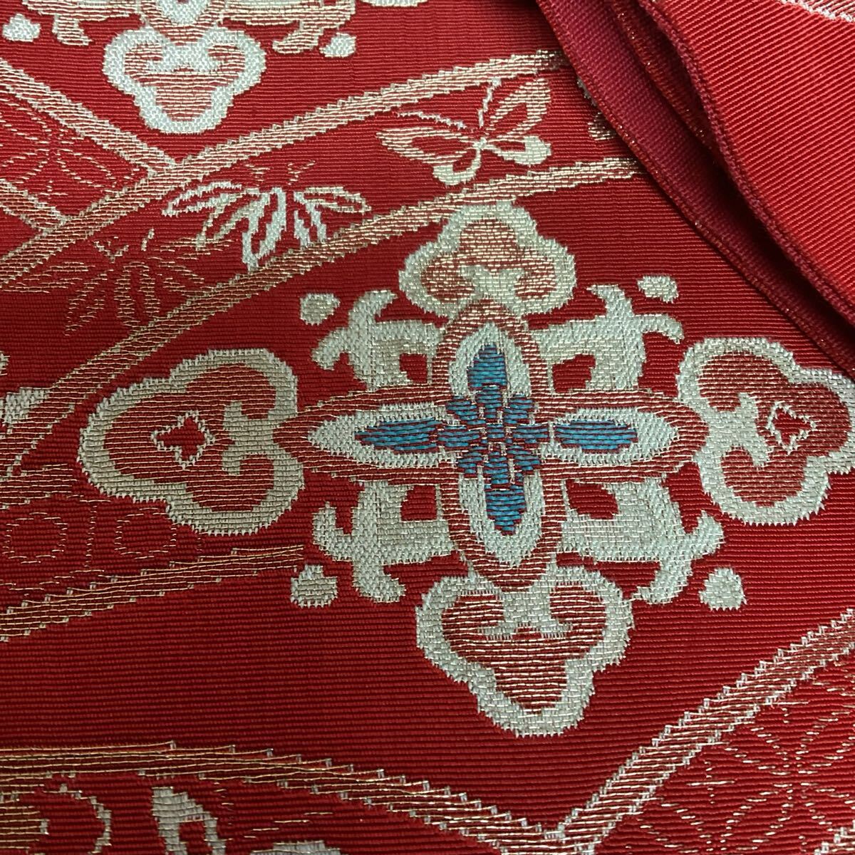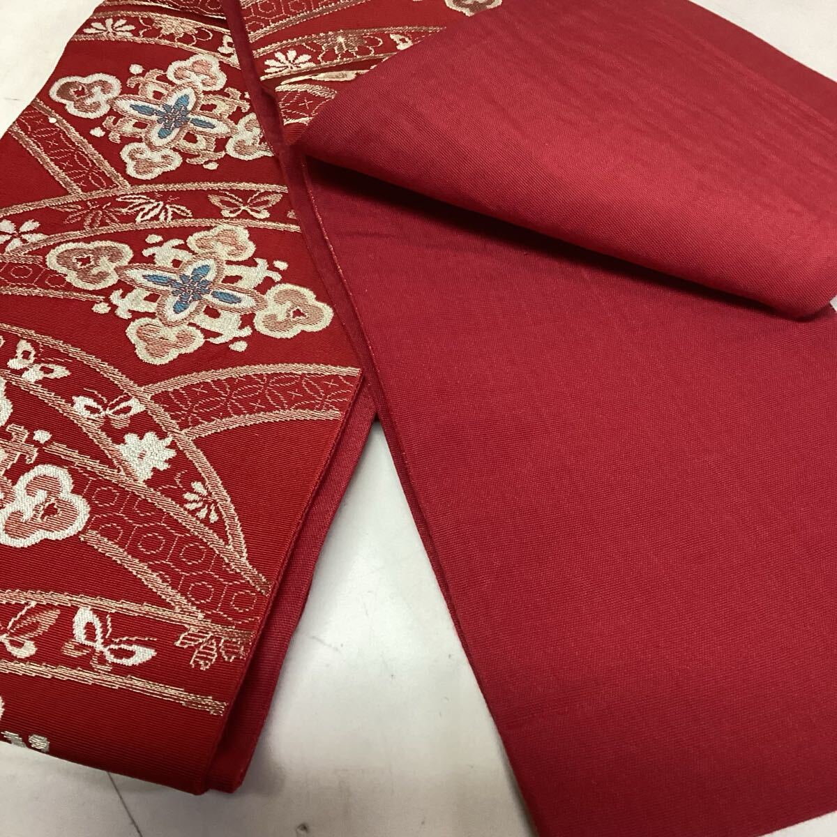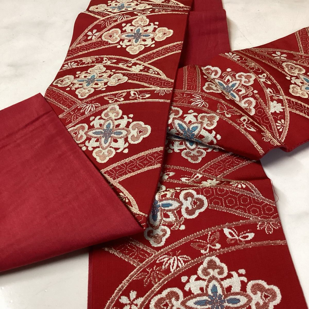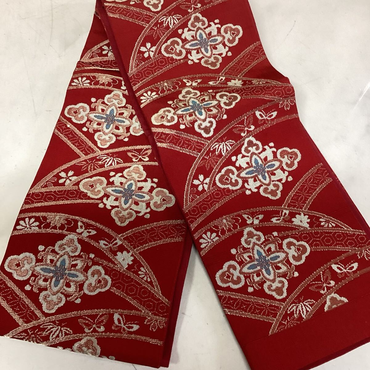 和装 着物 帯 赤 カジュアル 花柄刺繍模様 華やか レディース (と12)