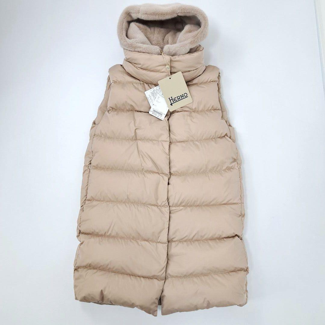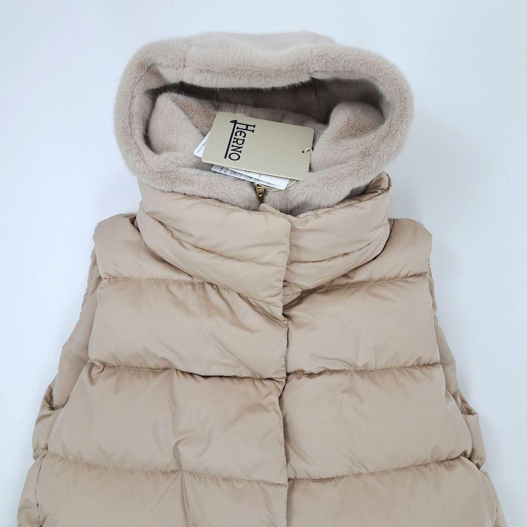 未使用タグ付き 2024AW HERNO ヘルノ ダウンベスト ダウンジャケット ダウン ジレ エコファーフード付 定価¥199100 レディース