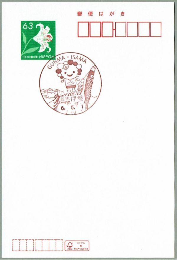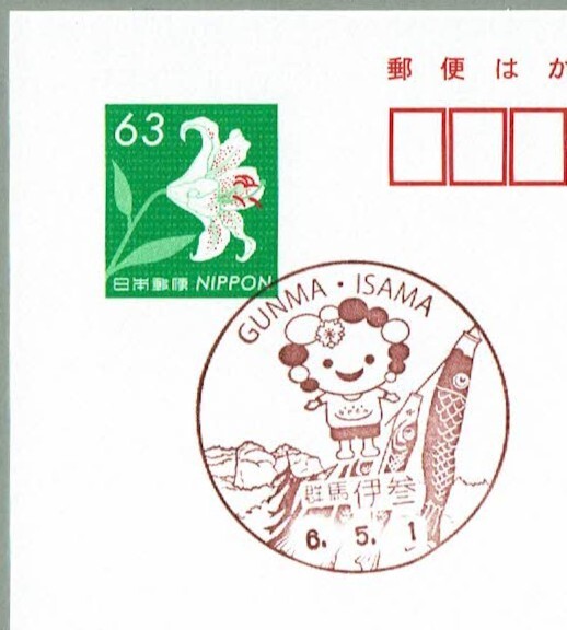 2024(令和6)年5月1日から使用開始された、風景印を官製はがきに使用開始の初日に押印。