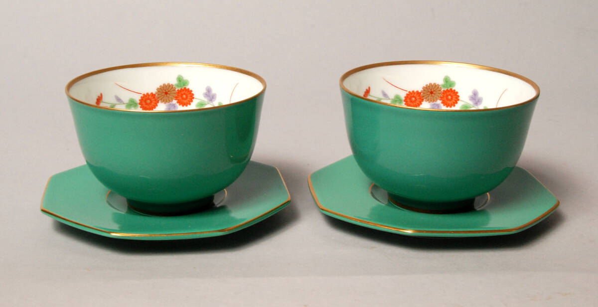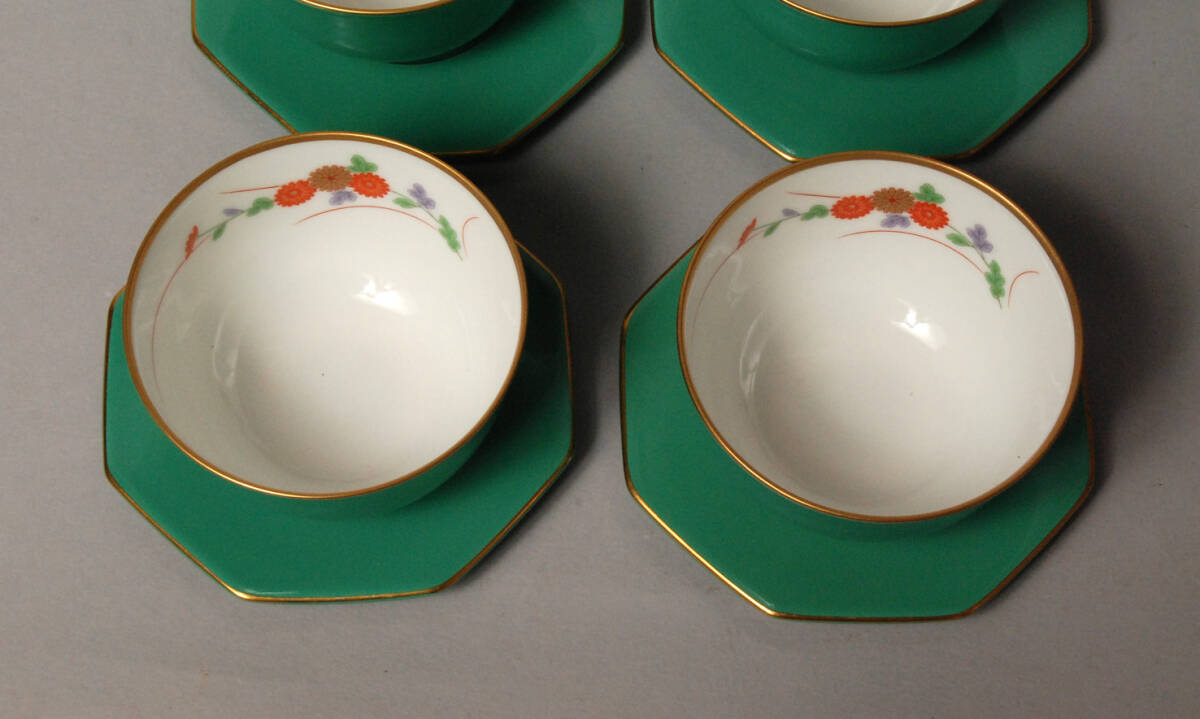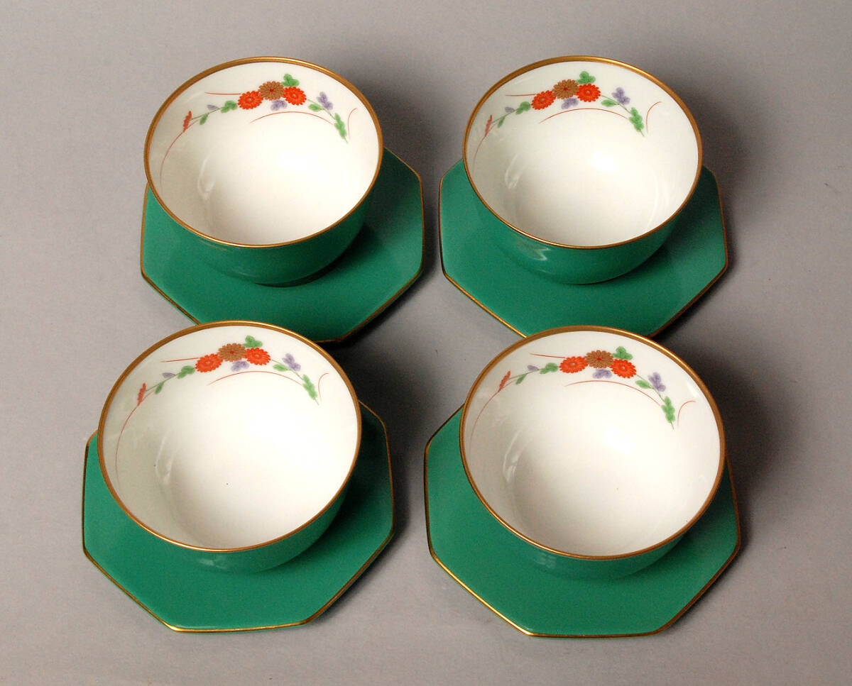 | ご覧頂きありがとうございます。 | 香蘭社の8角形の茶托付き湯呑み4客セット |