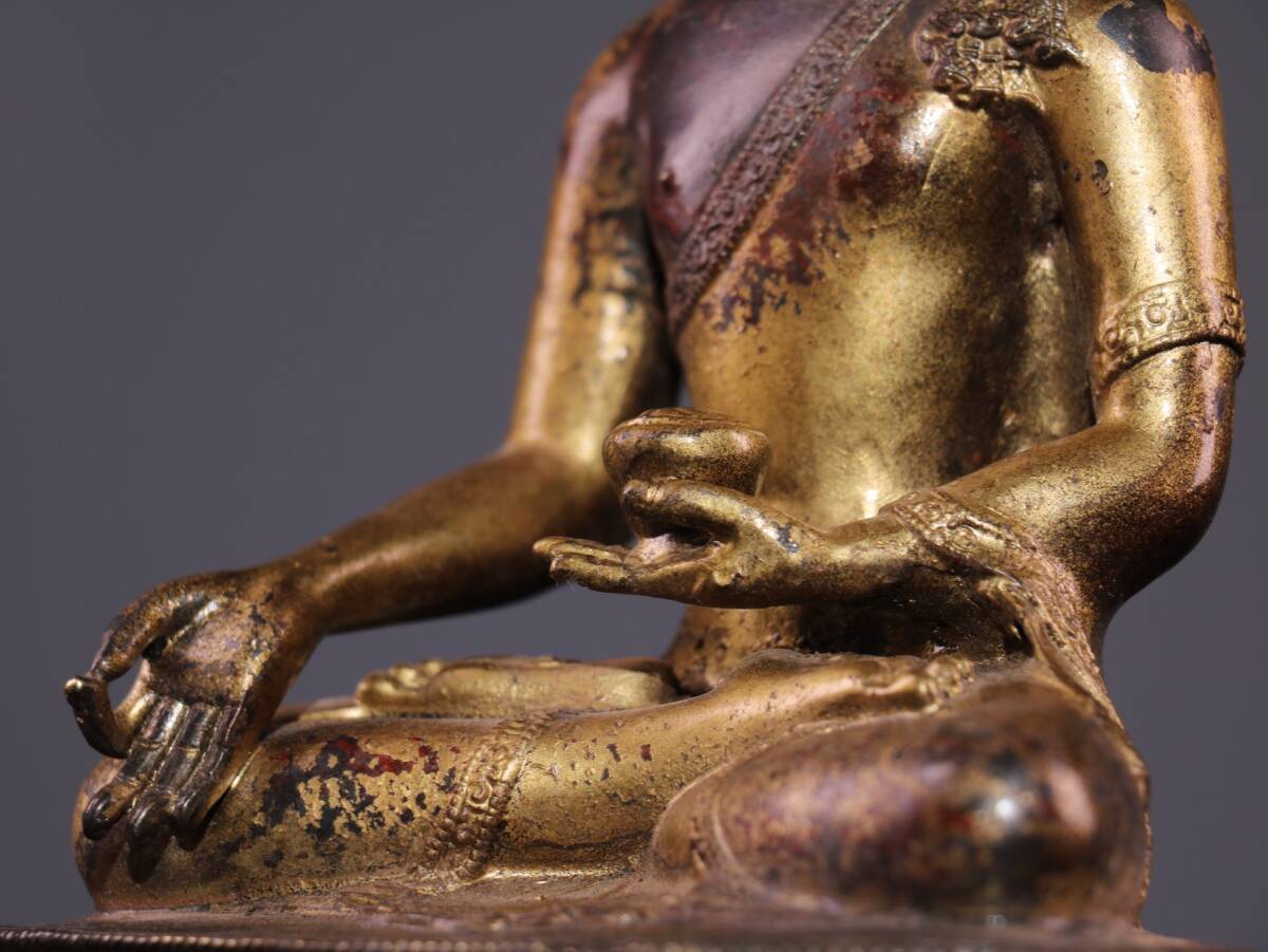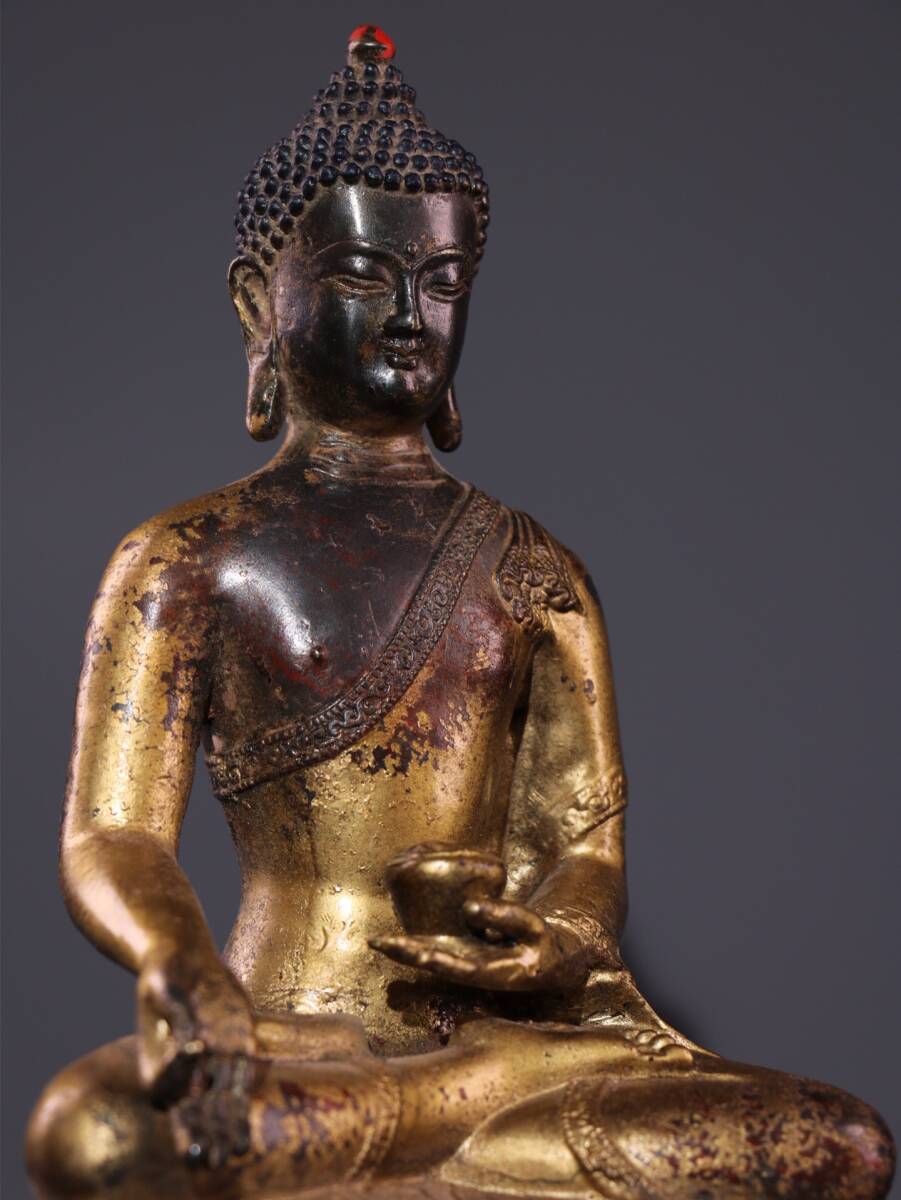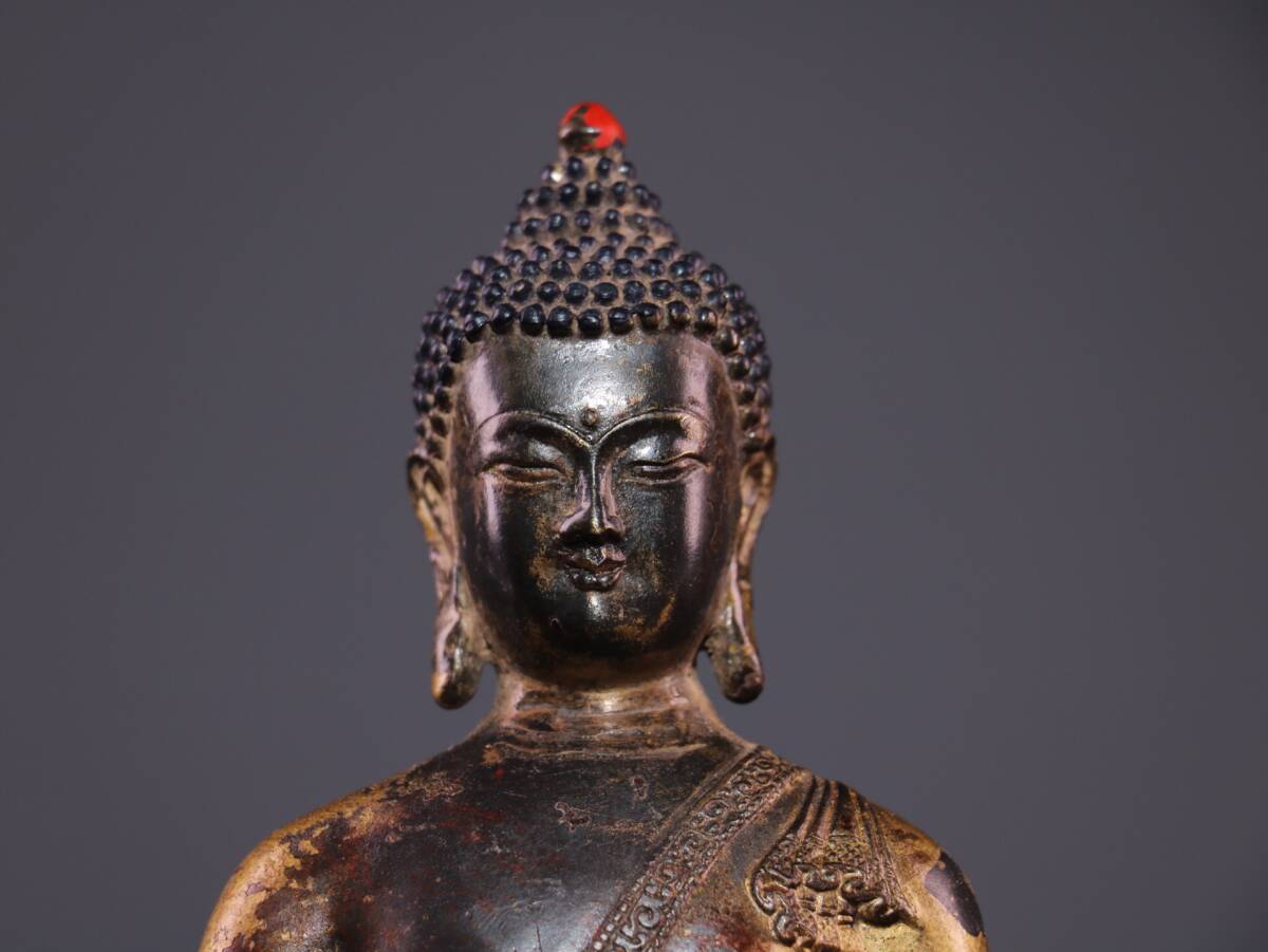 | 【蔵友館蔵品・銅製・泥金・朱砂・釋迦牟尼如來像】・希少珍品・置物・賞物・中国時代美術 |
