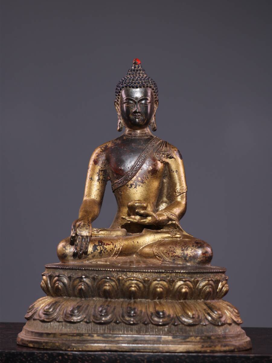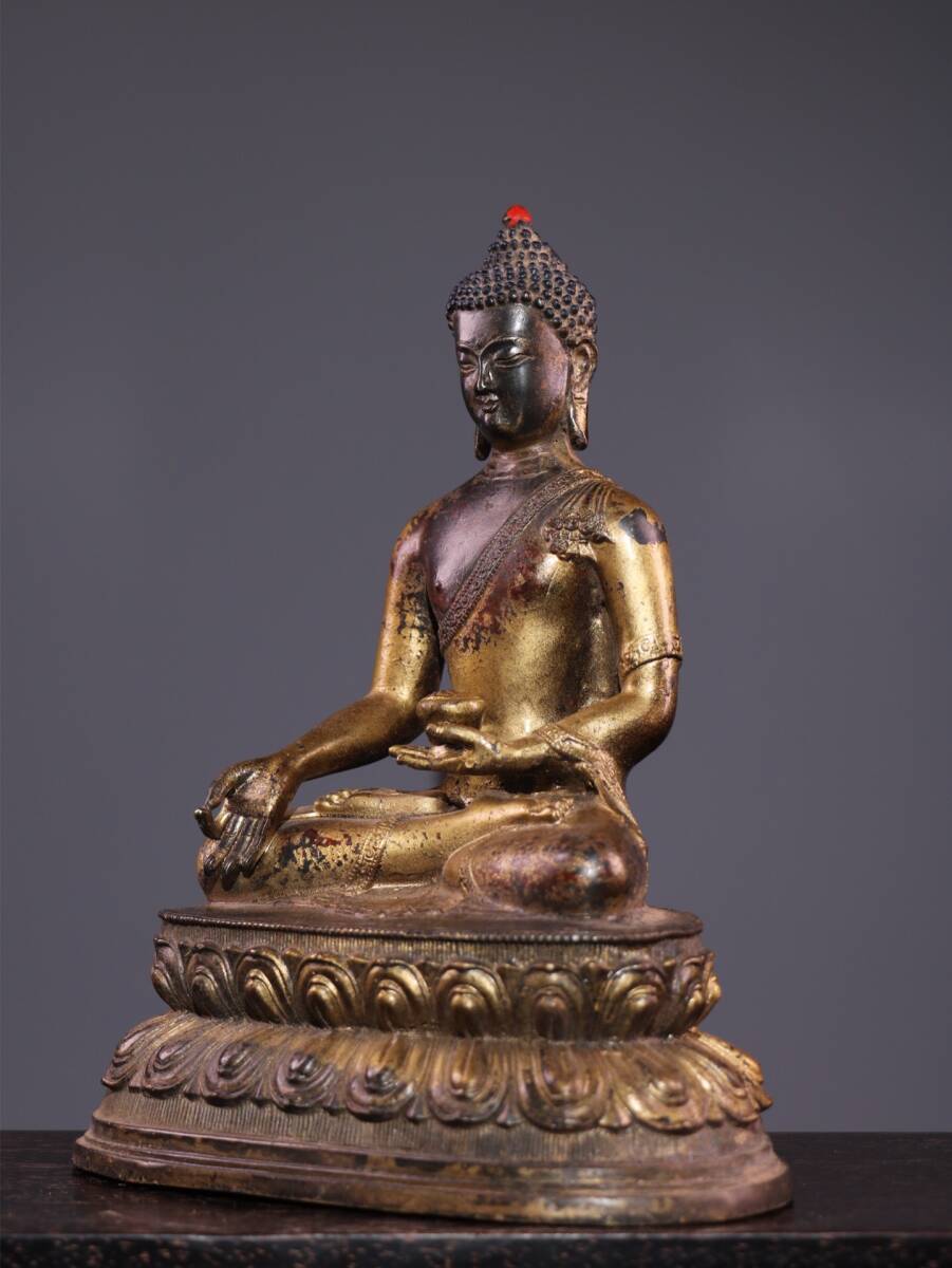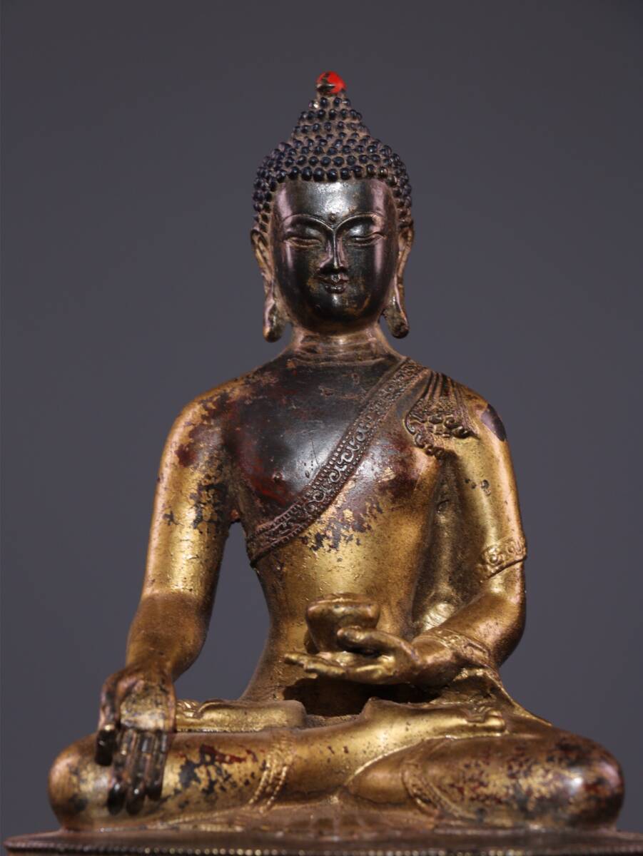| 【蔵友館蔵品・銅製・泥金・朱砂・釋迦牟尼如來像】・希少珍品・置物・賞物・中国時代美術 |