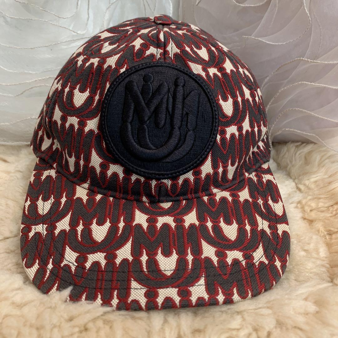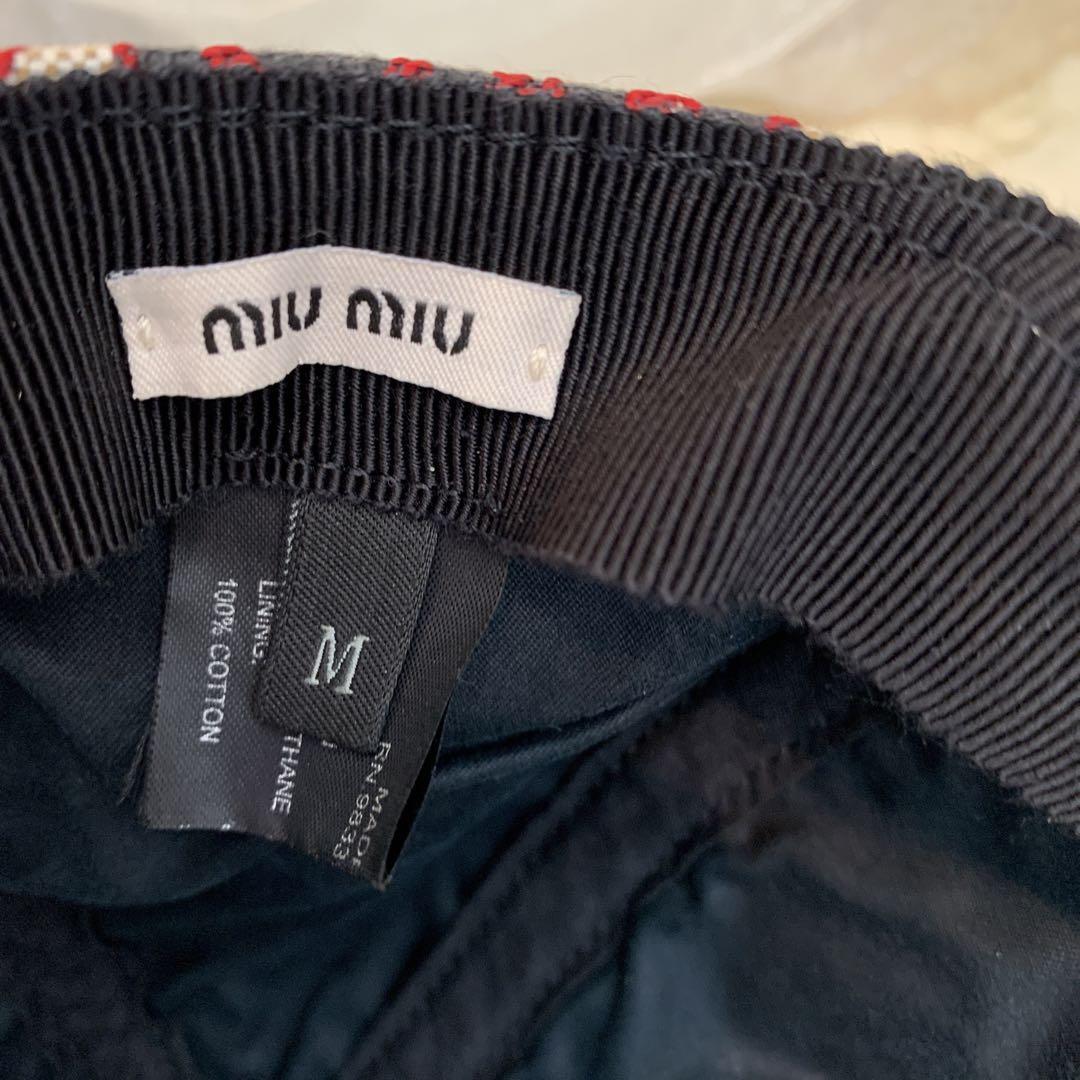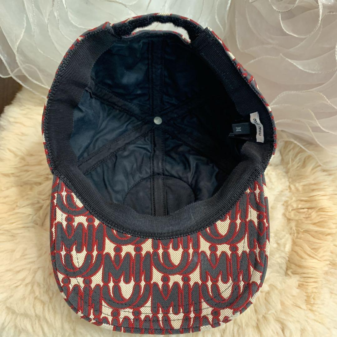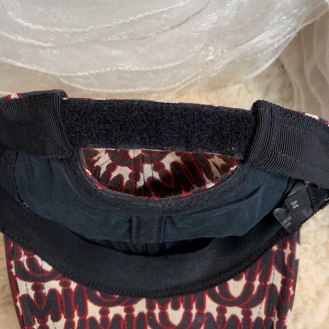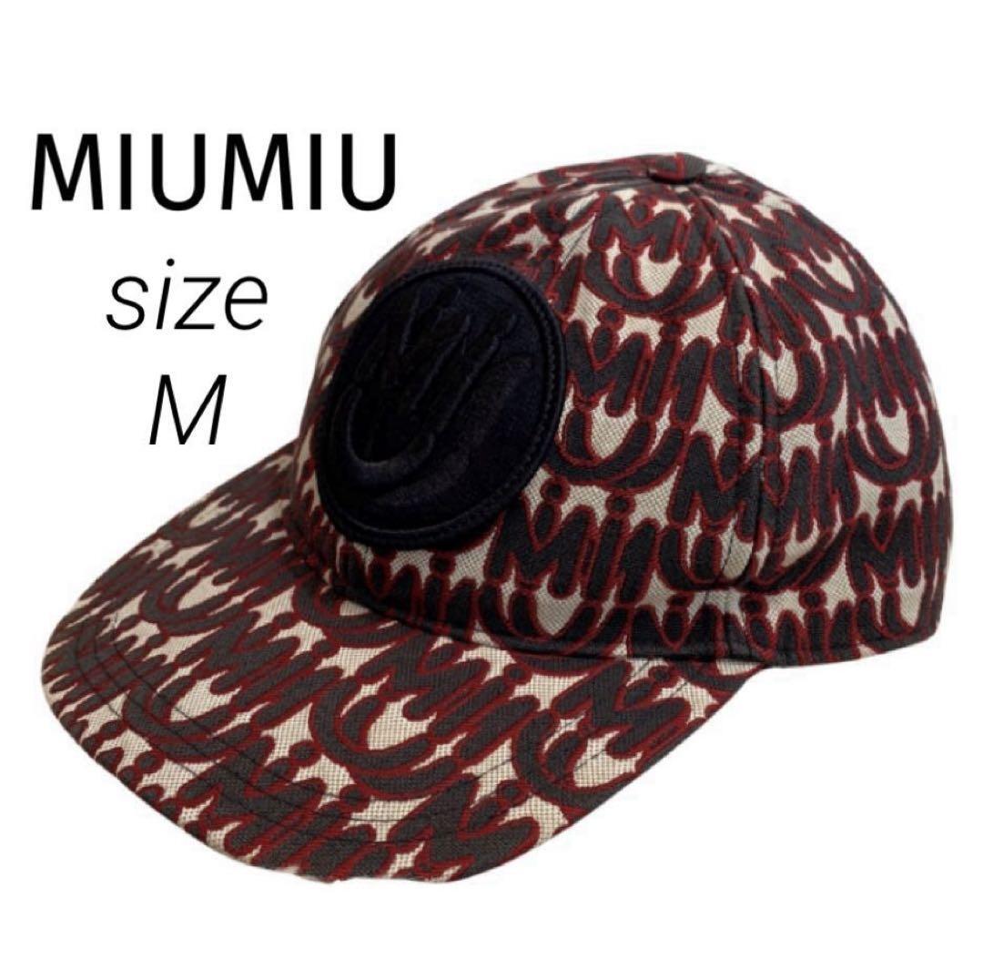 MIUMIU ミュウミュウ ベースボールキャップ 帽子 ロゴワッペン ジャガードキャンバス 総柄 ロゴ ベージュ ブラック レッド Mサイズ サイズ調節可能 レディース ユニセックス