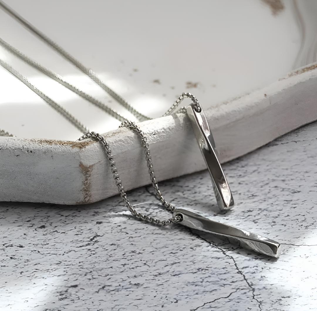 □スティックペンダントネックレスは、シンプルでありながら光沢感と清涼感を持ち合わし、さらに、高級感のあるデザインが特徴です。
